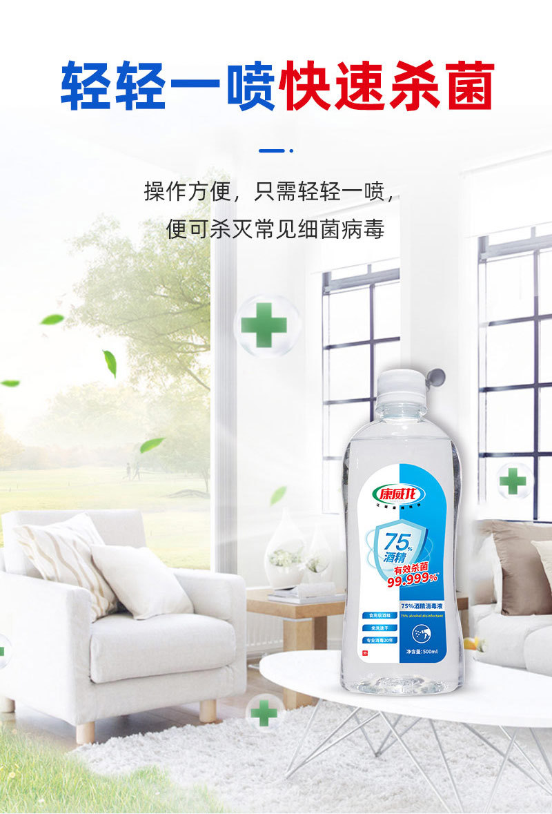 Дезинфицирующее средство на основе 75% спирта 500 мл одноразовое простое бытовое дезинфицирующее средство для кожи, быстрое высыхание