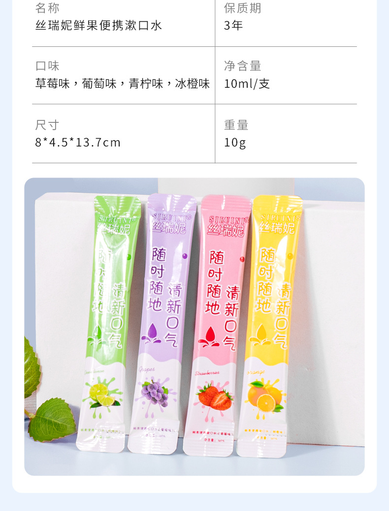 ![]() | 10ml peach mouthwash (english version) | 3шт: ¥0.18, 2000шт: ¥0.15, 10000шт: ¥0.12 | 0 | 5766234553047 | |