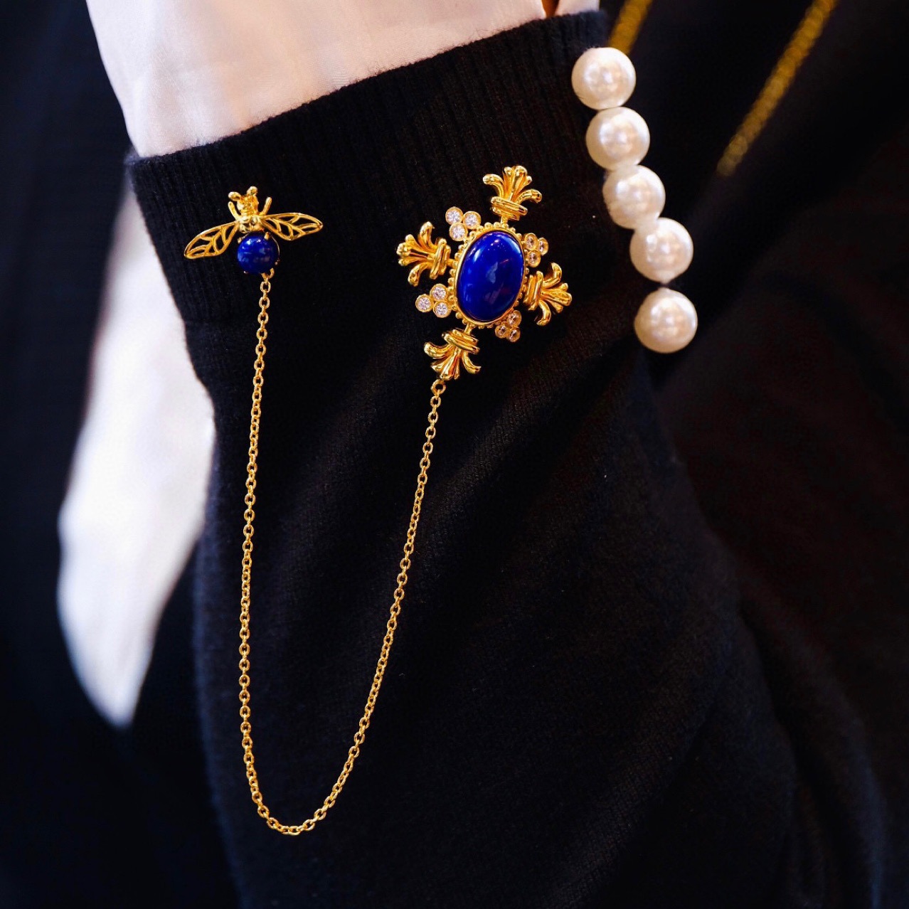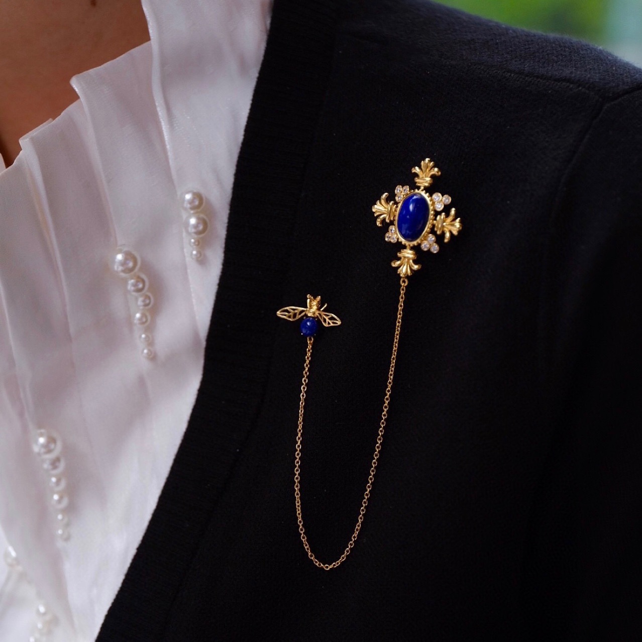 天然青金石胸针