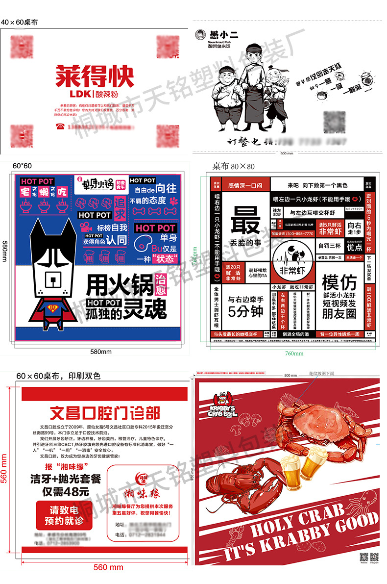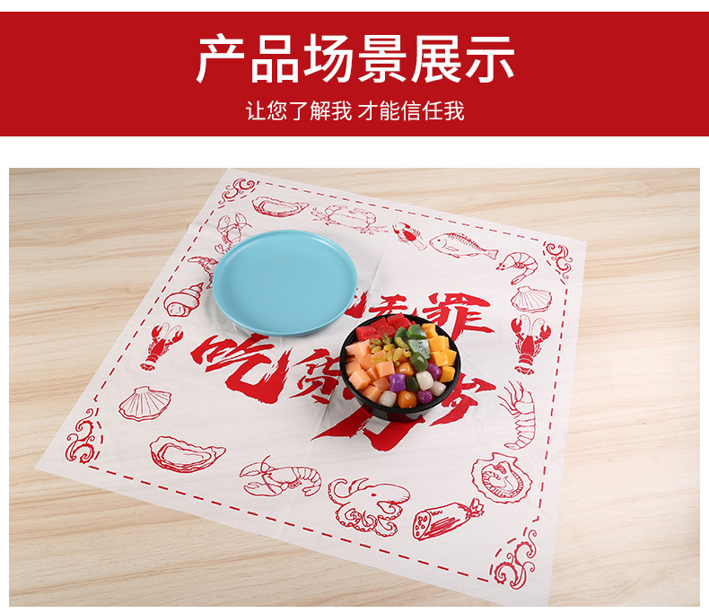 Одноразовые пластиковые скатерти, настроенные для кейтеринга, лобстера, на вынос, индивидуальная упаковка с печатью логотипа, подстилки и скатерти на заказ