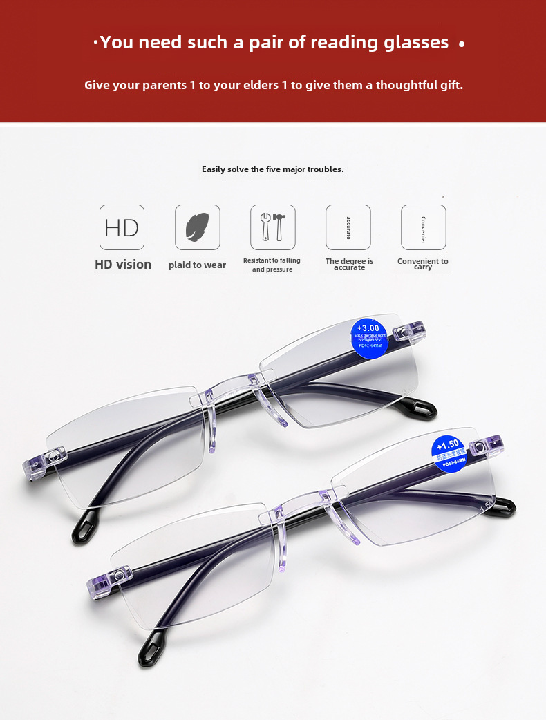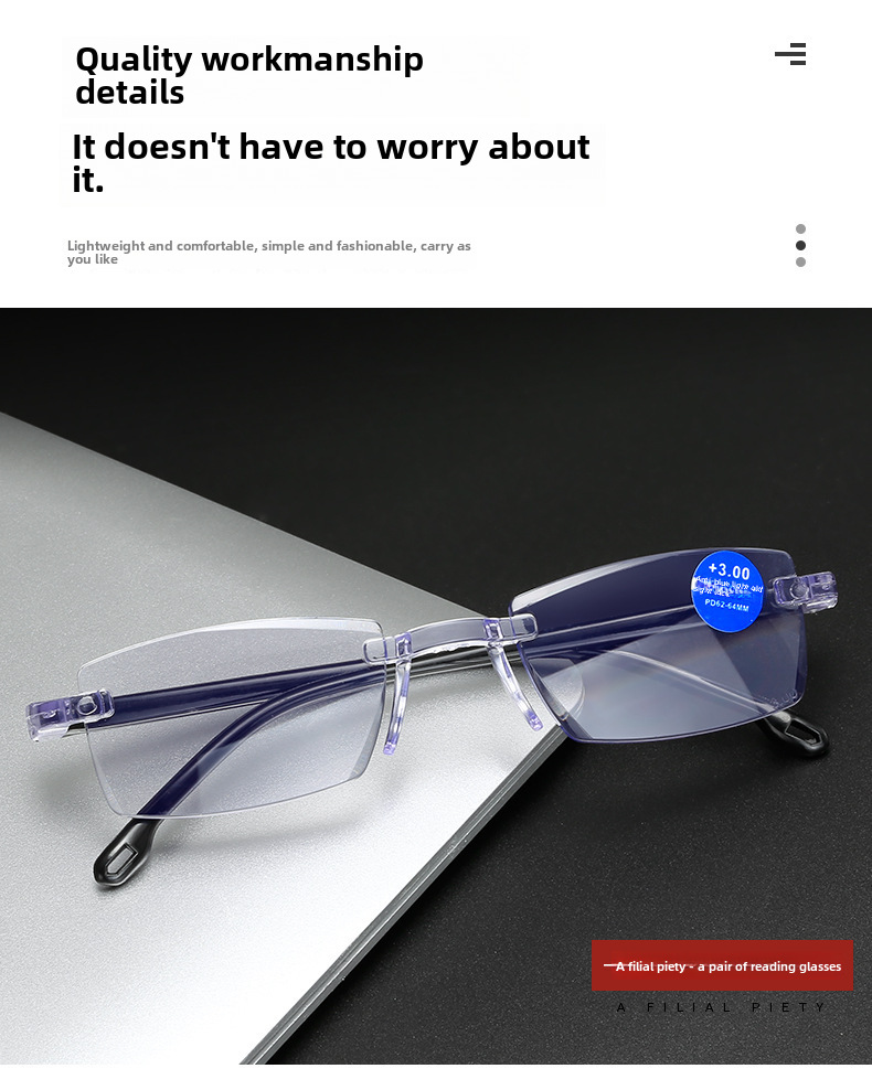 Новые очки для чтения с защитой от синего света, безрамочные, с острыми краями, для чтения на рынке Jianghu