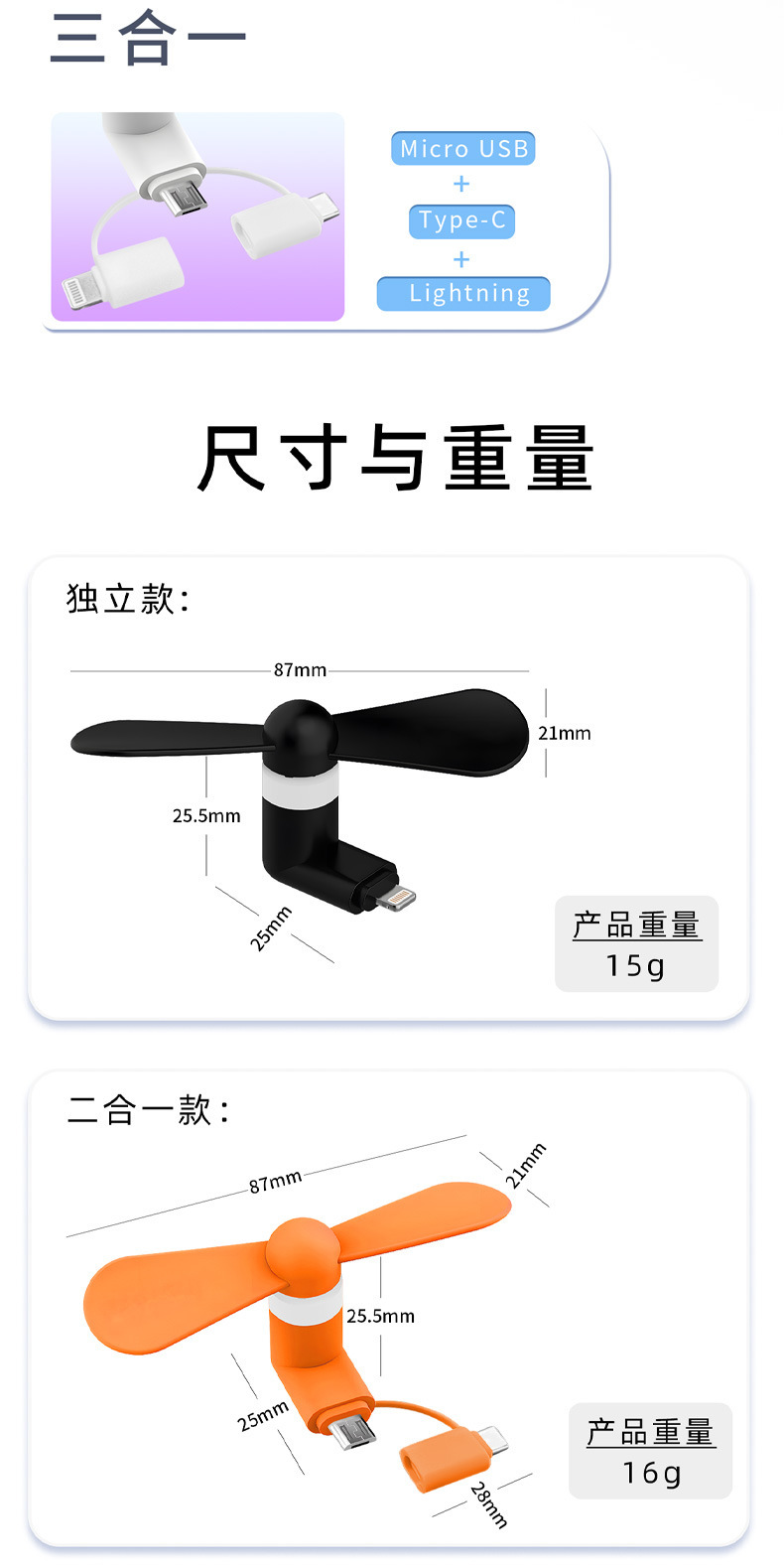 产品重量:独立款15g;二合一款16g;三合一款19g;