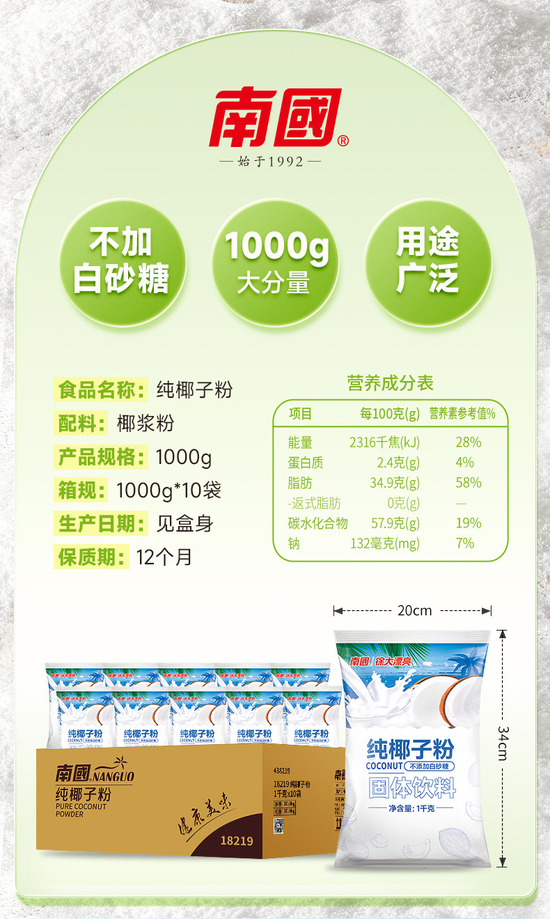 Nanguo чистый кокосовый порошок 1000г, кокосовое молоко, оптовая продажа