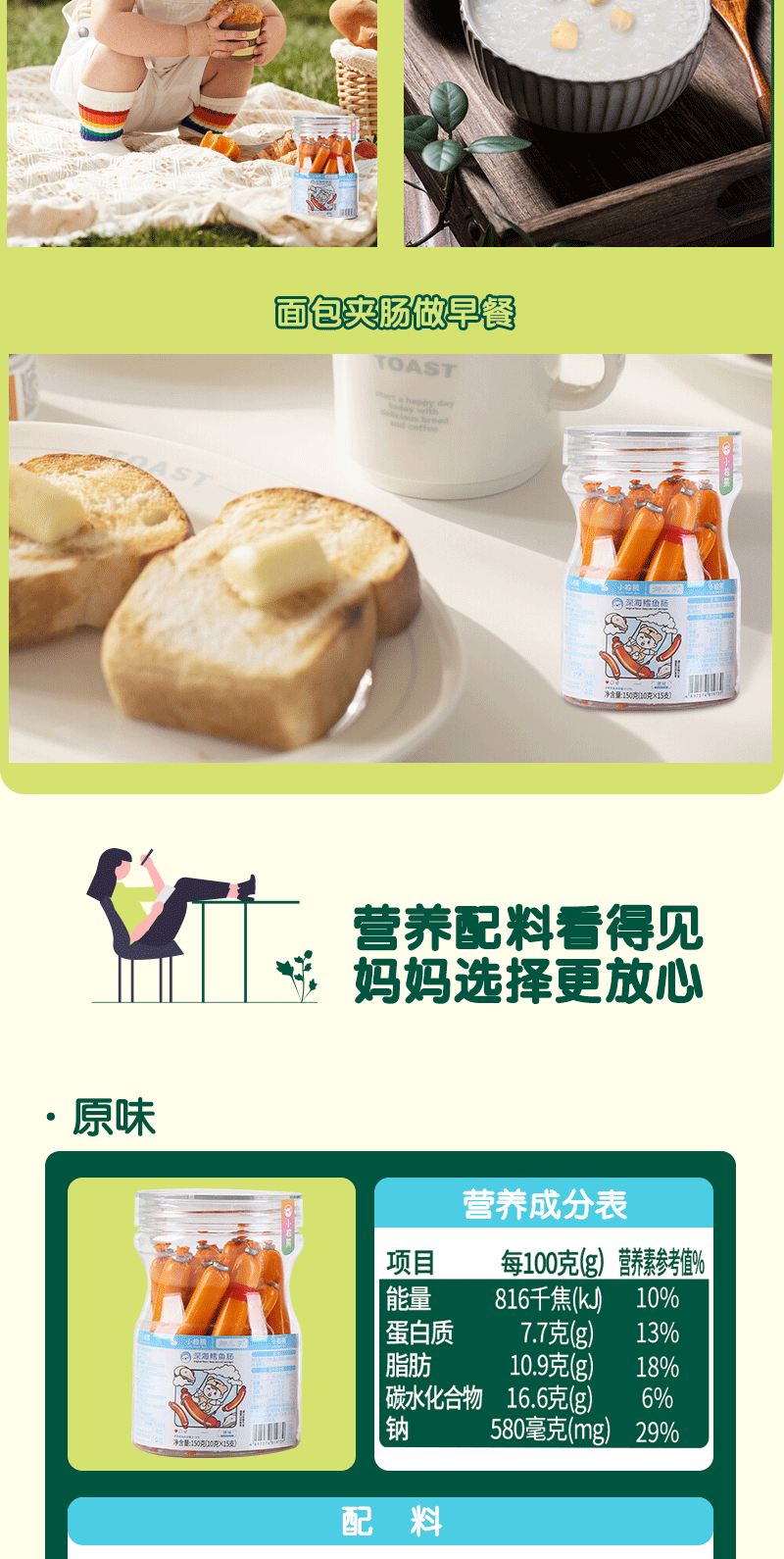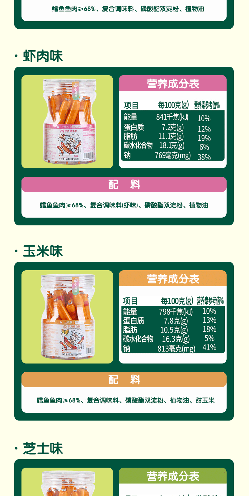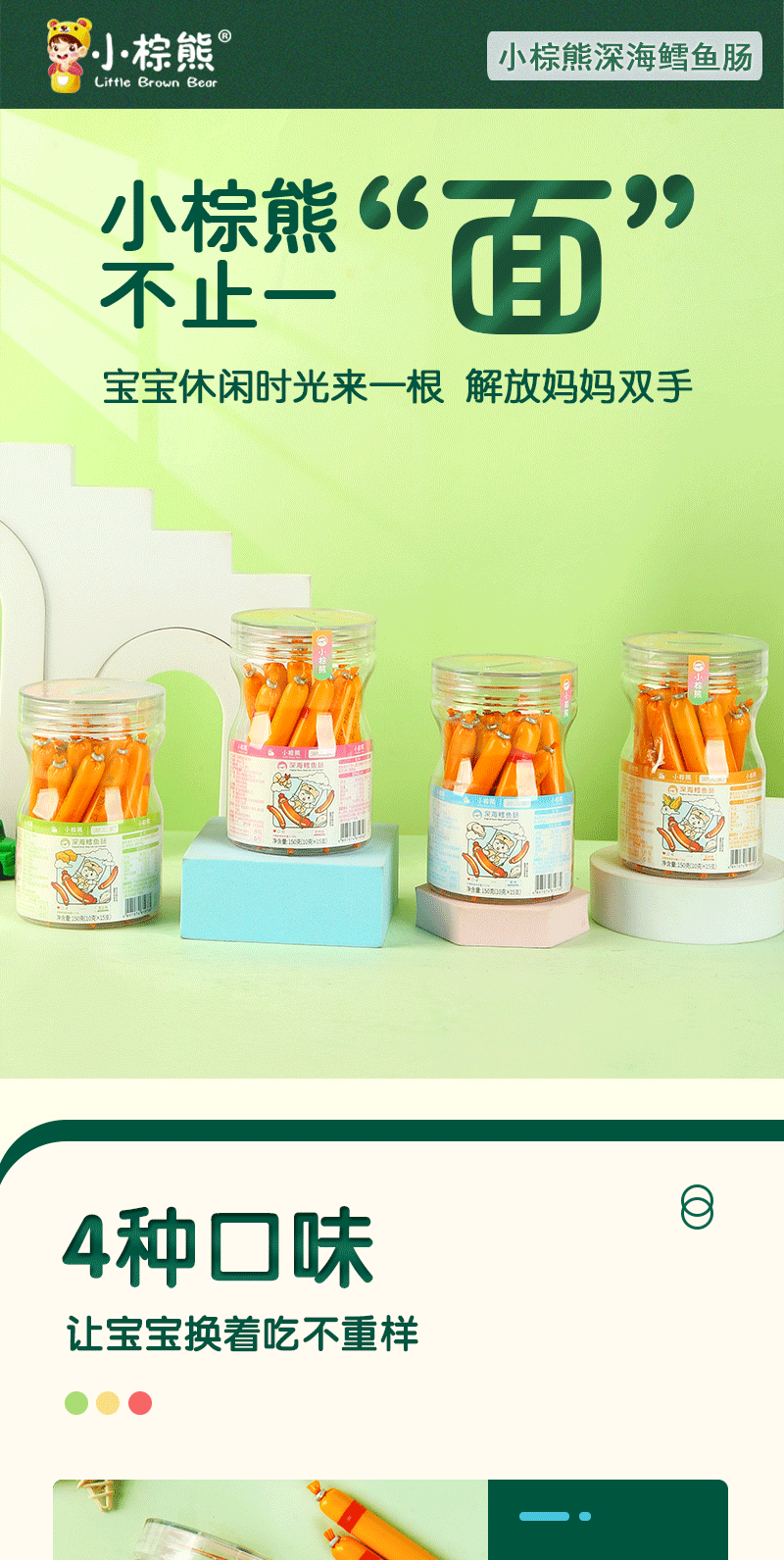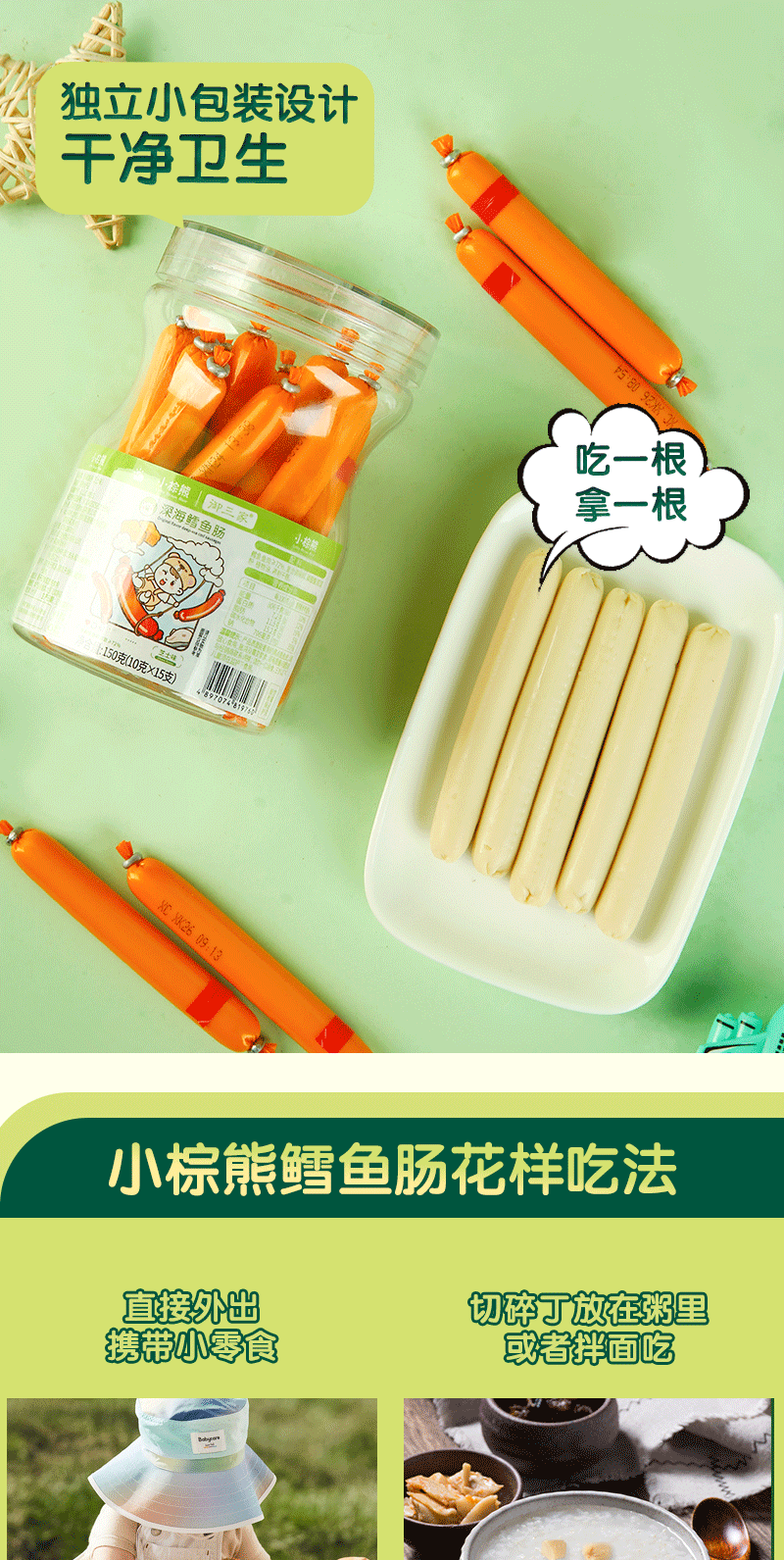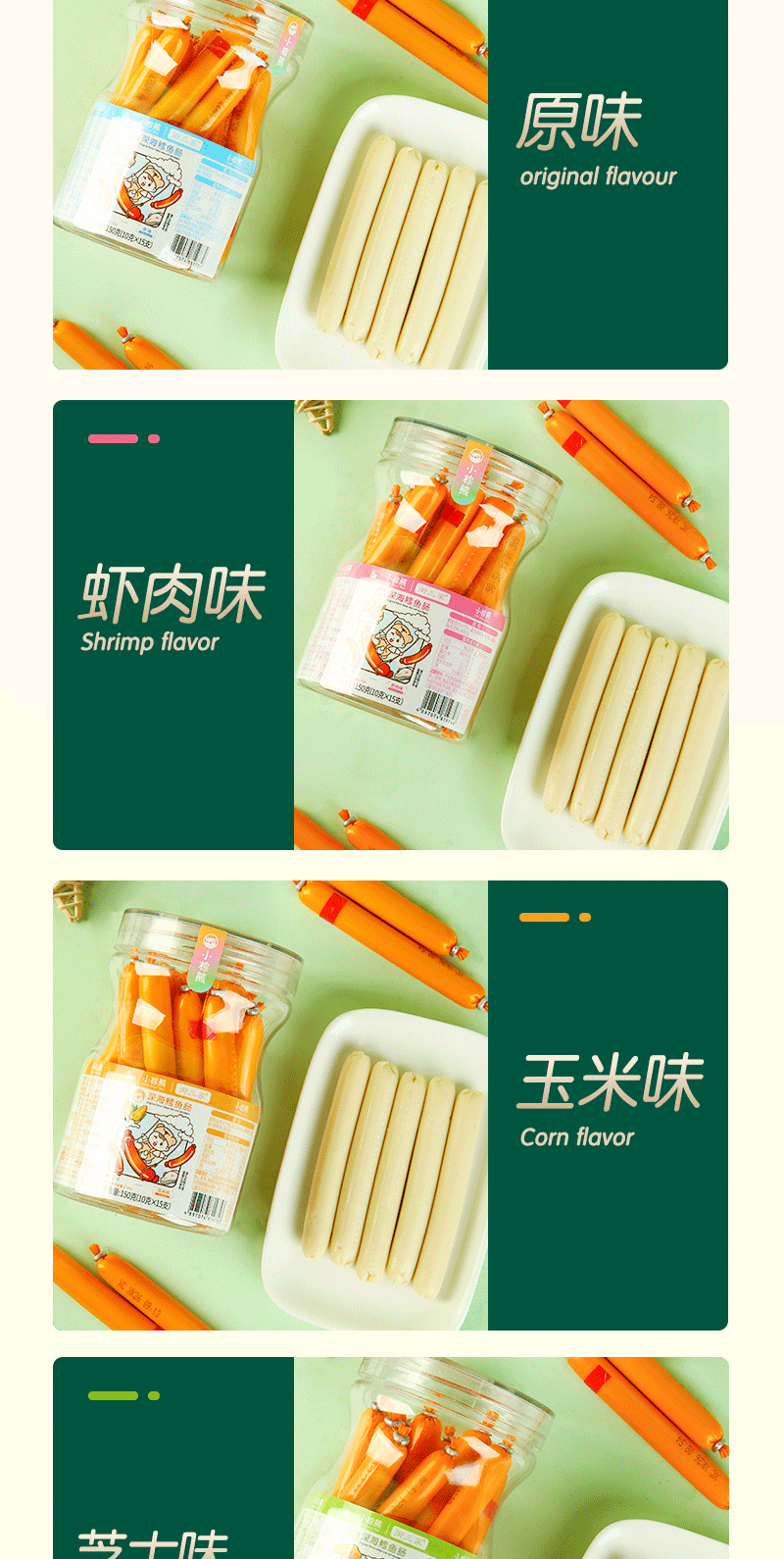 Колбаса из трески маленького коричневого медведя из Гонконга 150г, 4 вкуса на выбор, консервированная 10г × 15 штук