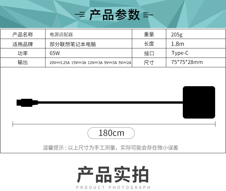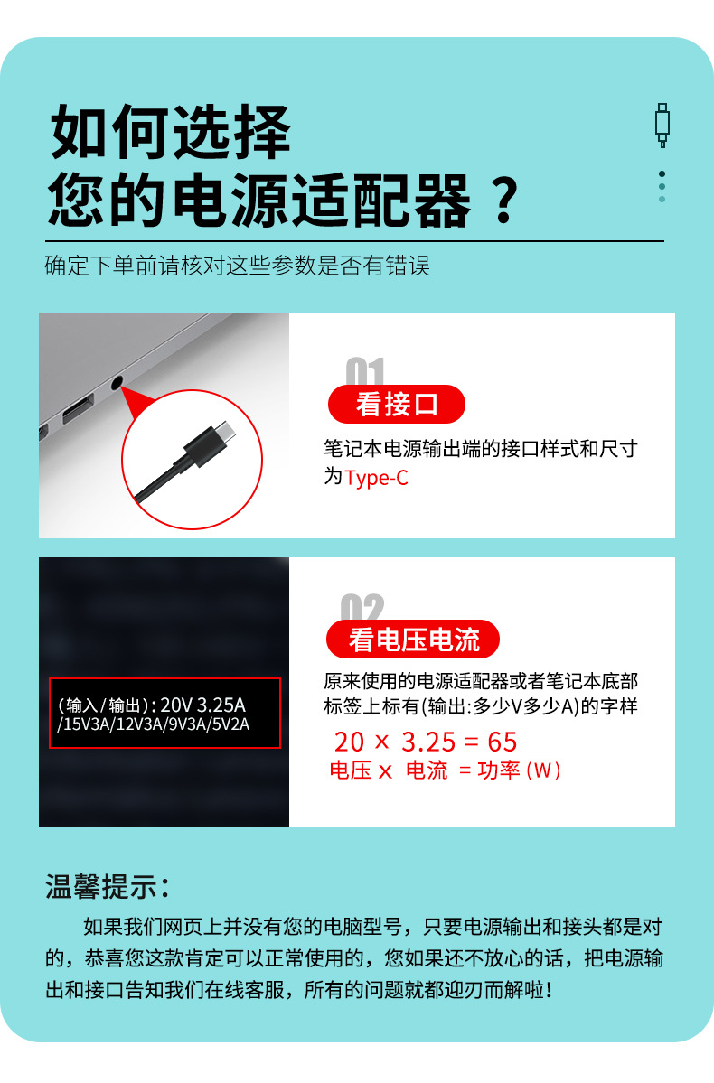 Подходит для Lenovo 65W европейский адаптер питания ноутбука 20V 3.25A Type-C