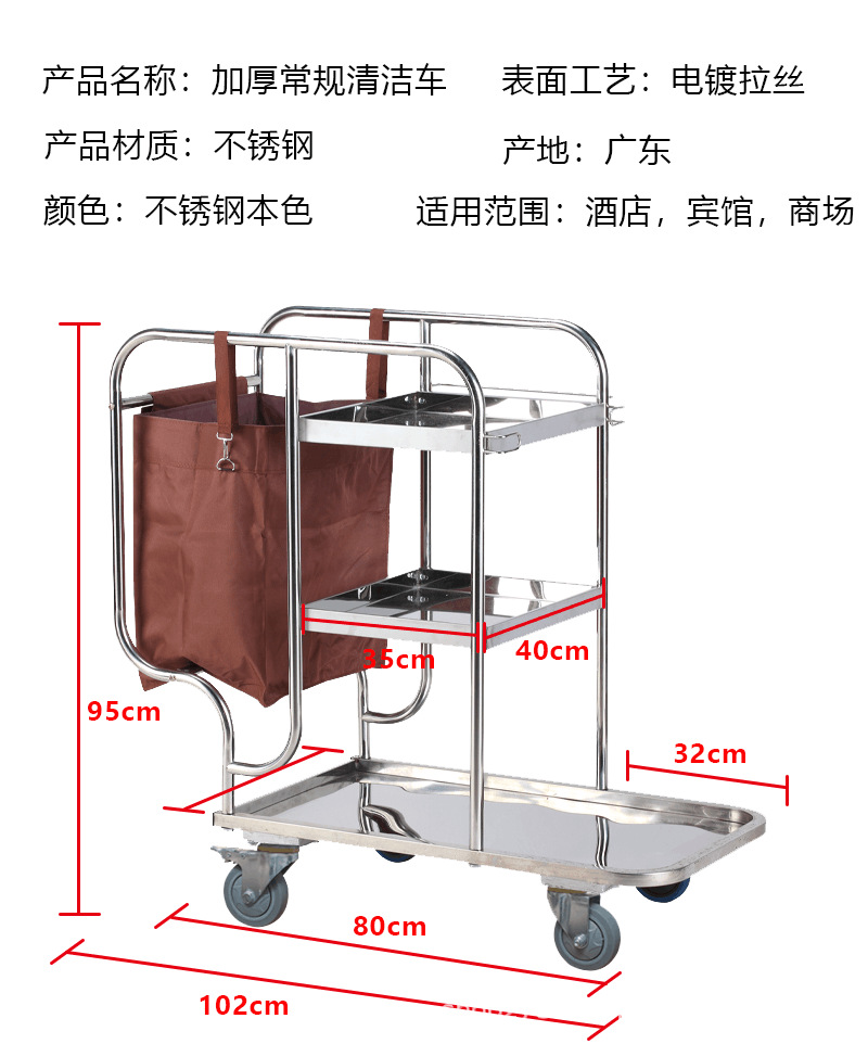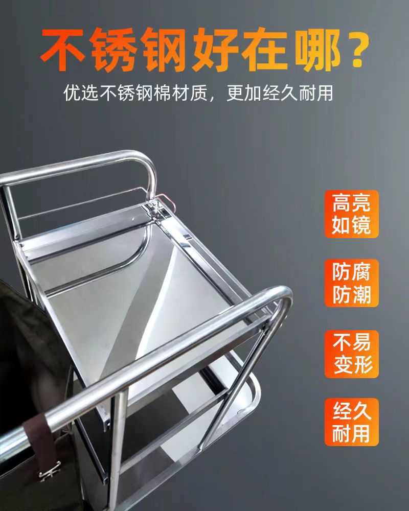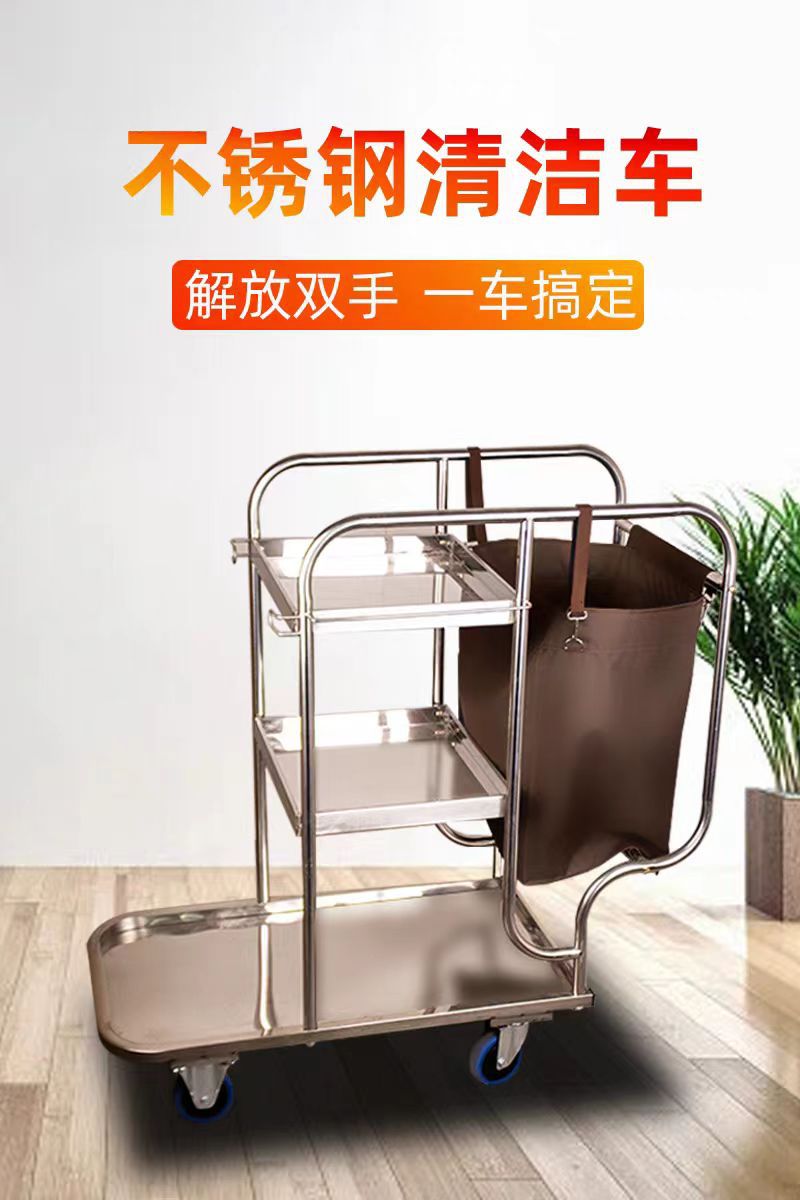 Тележка для уборки из нержавеющей стали для гостиниц, специальная бесшумная тележка, многофункциональная уборочная тележка