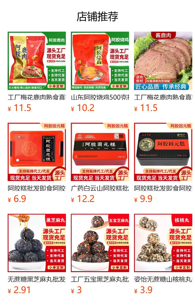 ![]() | 250g donkey-hide gel pork face | ¥10.0 / ≈ 121 ₽ | 99766 | 5150172075911 | |