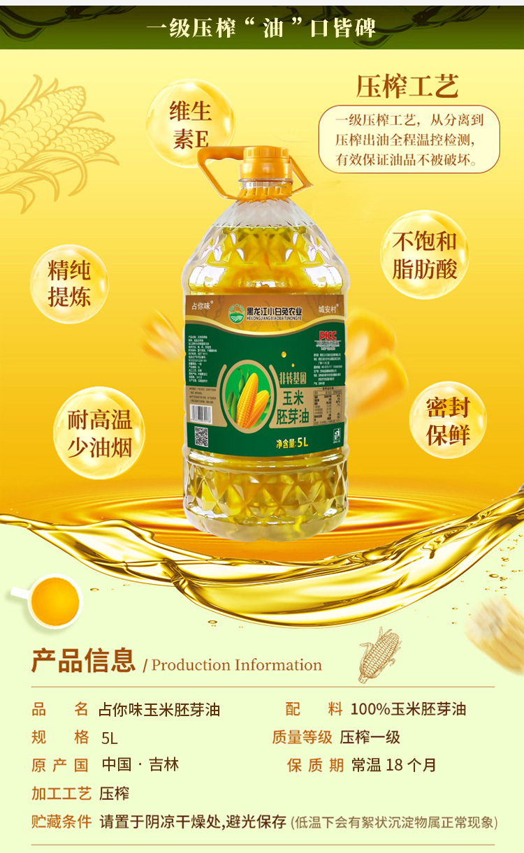 Кукурузное масло первого сорта, прессованное из кукурузных зародышей, не ГМО, пищевое, 5 литров, большая бочка, оптовая продажа