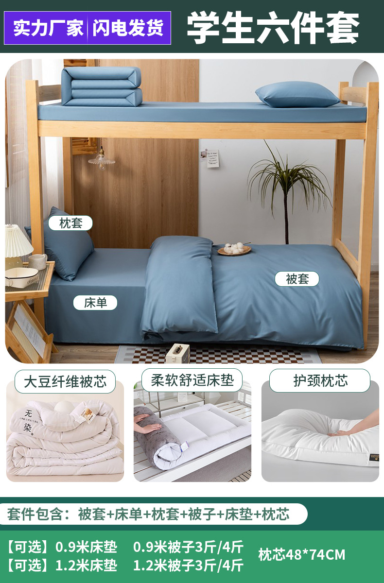 Оптовый комплект из трех предметов из чистого хлопка для студенческого общежития, комплект из шести предметов для сотрудников общежития, полностью хлопковый, на заказ