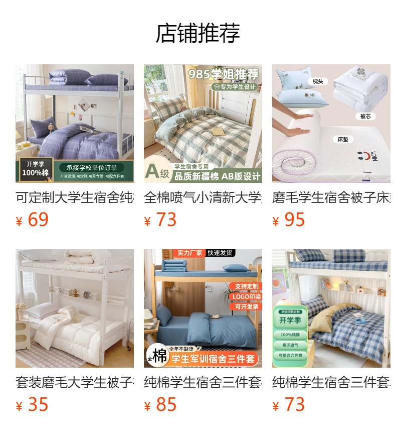 ![]() | Happy surround-powder [40 cotton 100%]] | 0.9m bed [six-piece set] 2kg feather silk quilt core + soft mattress + pillow core | ¥195.0 / ≈ 2 349 ₽ | 1000 | 6011311635456 | |