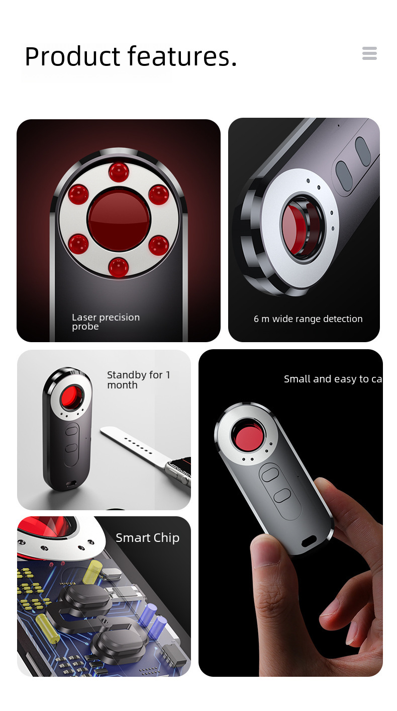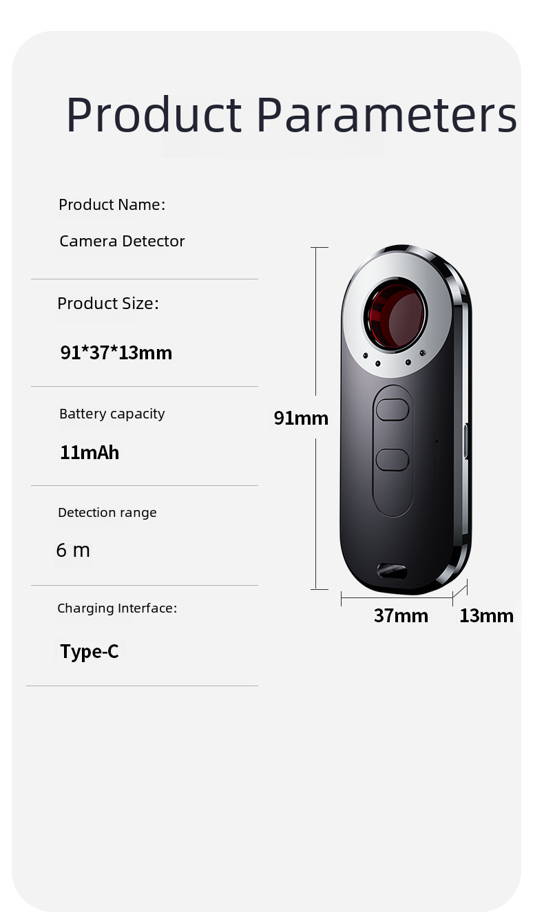 - Compact Design:Measuring 91*37*13, this compact camera wireless detector is easy to carry around, ensuring you can keep an eye on your surroundings at all times.