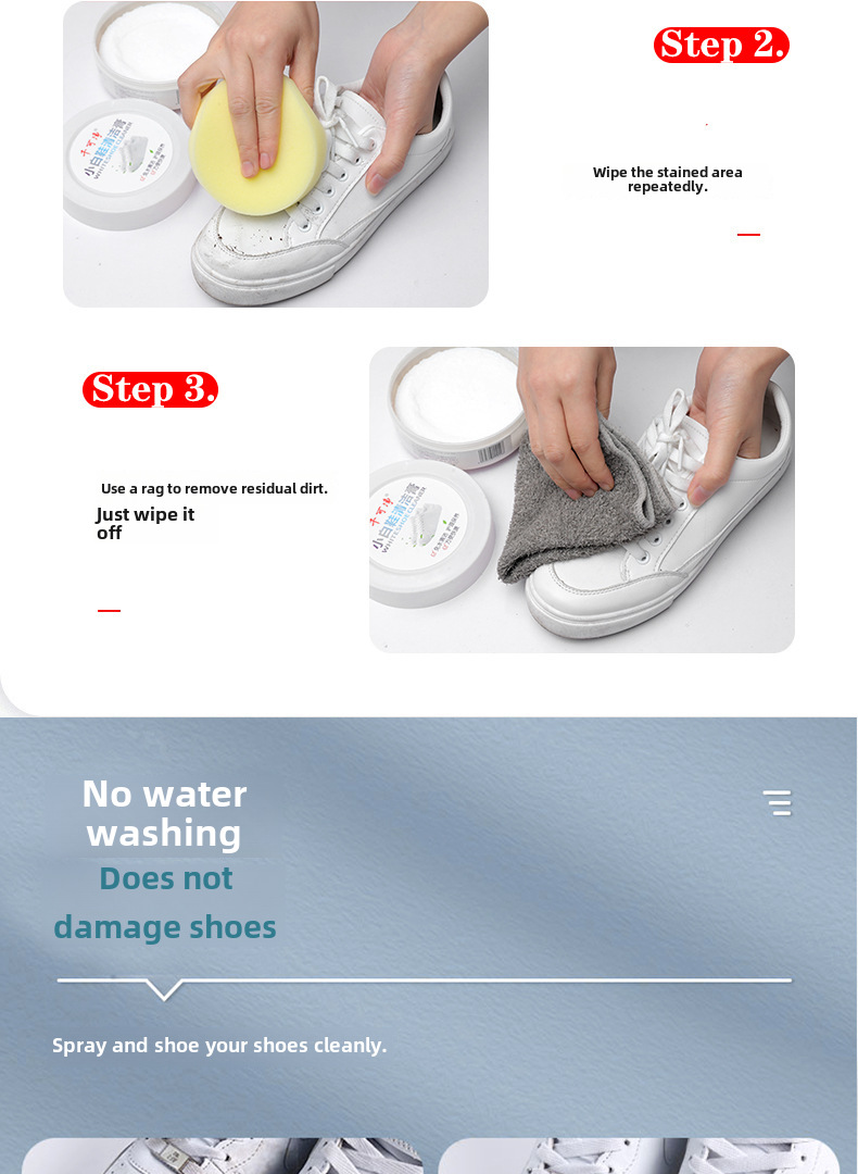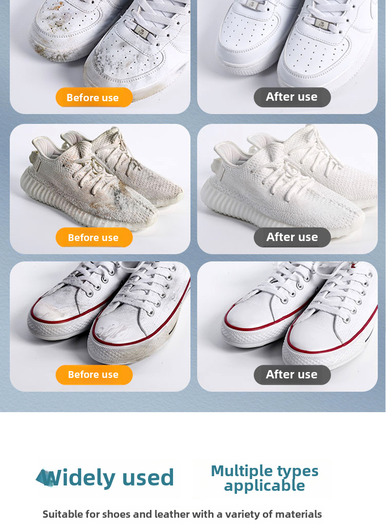 - Efficient Cleaning:This product offers efficient cleaning for your white shoes, effectively removing dirt and stains without the need for water.