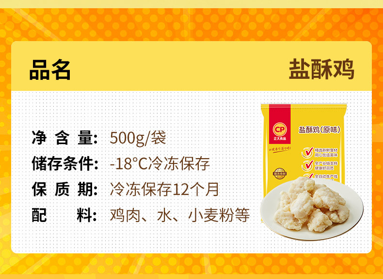 ![]() | Original salted crispy chicken 500g/bag | ¥10.9 / ≈ 131 ₽ | 0 | 5219167635447 | |