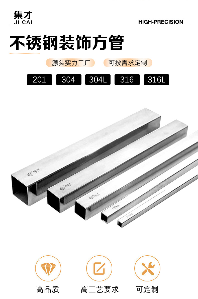 Квадратная труба из нержавеющей стали 304, зеркальная шлифовка, плоская прямоугольная труба 316, резка и обработка, толстостенная квадратная труба 201