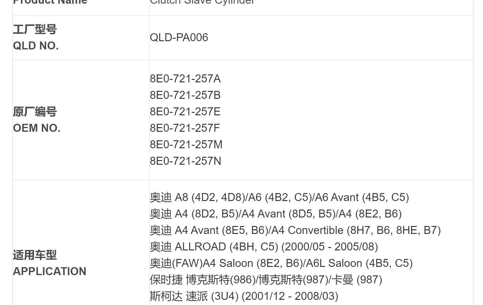 Номер товара QLD-PA006