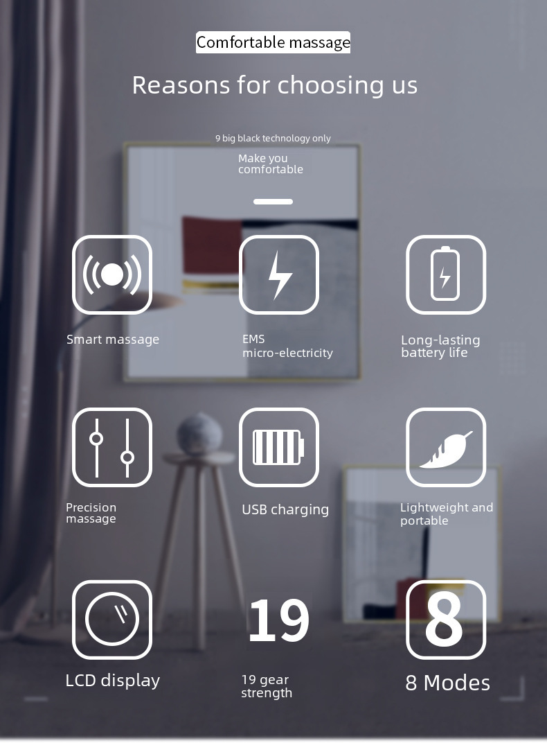 - EMS Technology:Equipped with Electromagnetic Stimulation (EMS) technology, this massager provides a deep tissue massage, enhancing blood circulation and promoting overall health.