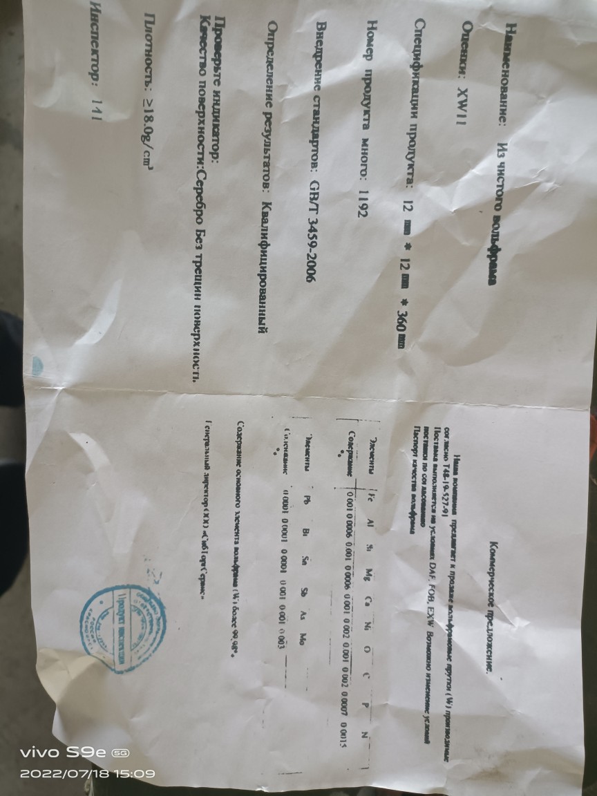 Продажа вольфрамового прута, высокое содержание вольфрама