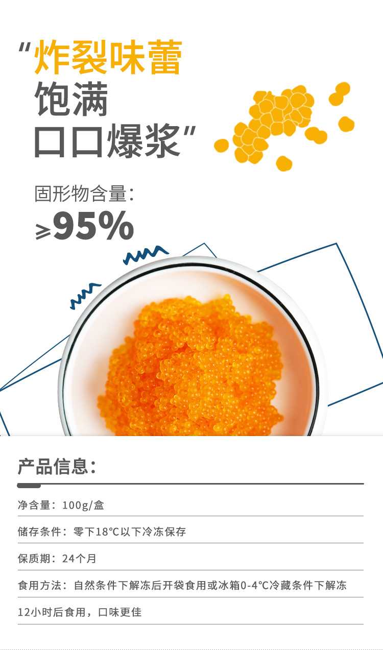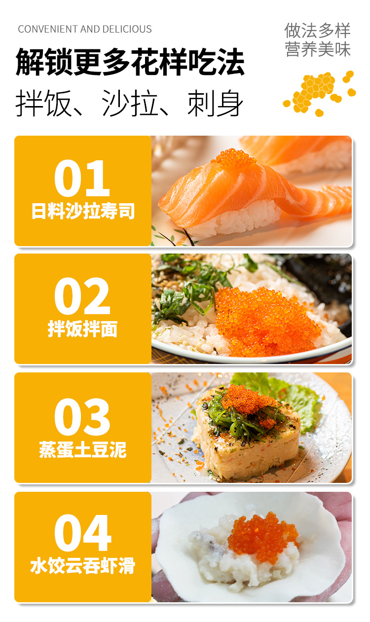 Непревзойденная икра 100Г/Коробка Перуанская летучая икра Вкус готового к употреблению ингредиента для суши из водорослей Морепродукты аквакультуры