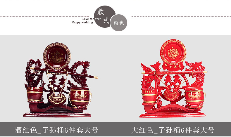 三件套实木红木色小号子孙桶套装婚庆结婚马桶同心锁陪嫁嫁妆摆件