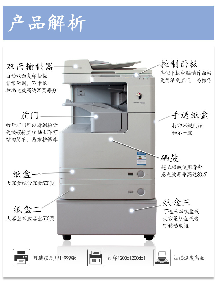 我们是专业的佳能IR2520i IR2525i IR2530i再制造工厂,提供适合全球各个国家的不同版本的复印机,欢迎外贸公司和国内外朋友与我们合作。