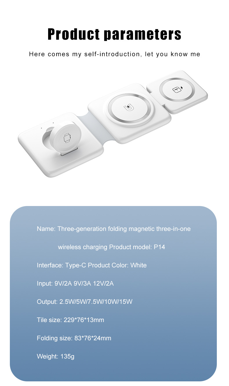 Складное магнитное беспроводное зарядное устройство P14 три в одном для Apple 14