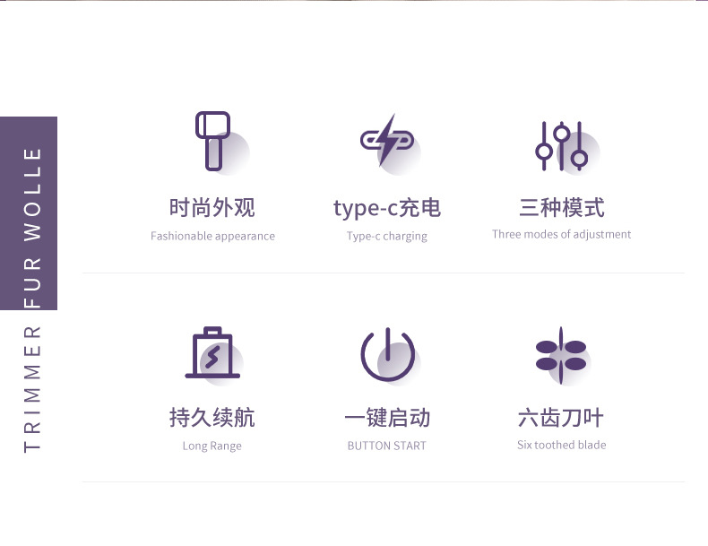 ![]() | Purple [charging third gear digital display] +2 spare cutter heads | ¥14.3 / ≈ 172 ₽ | 999535 | 5268883946875 | |