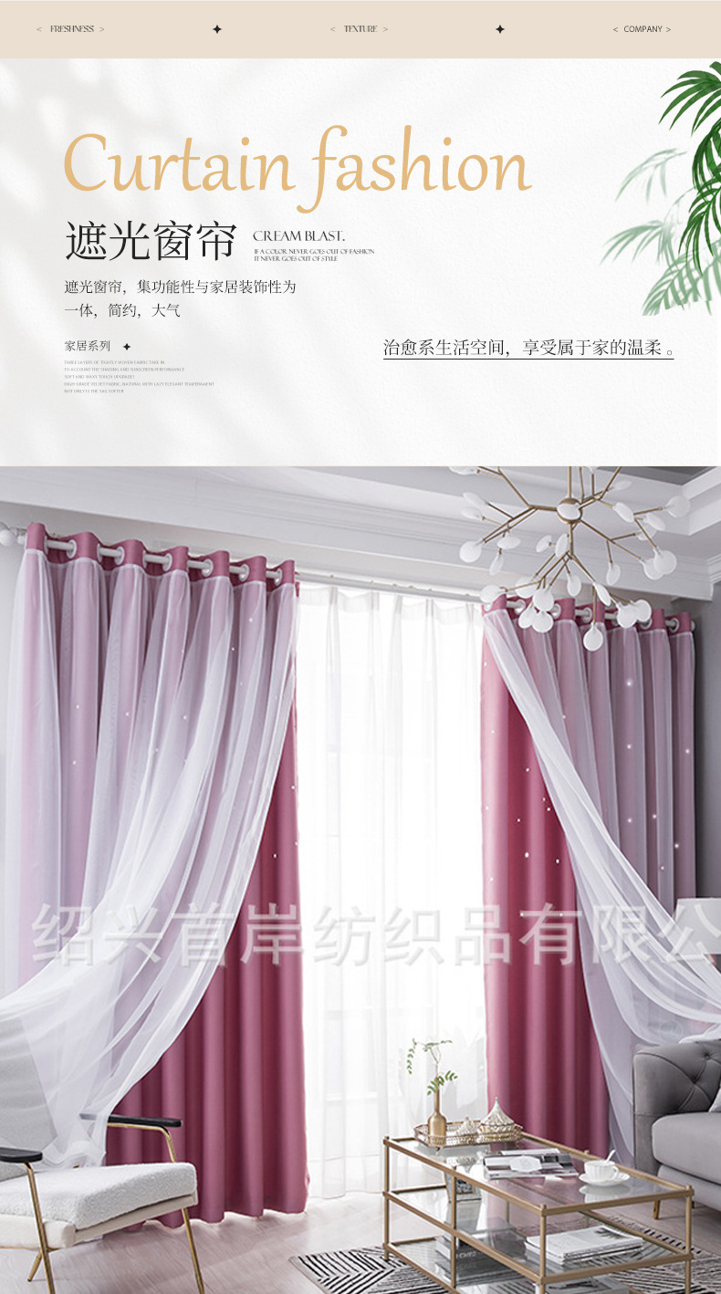 Занавески-блэкаут двойного слоя с газой Новые вырезанные звезды для спальни Тип крючка для эркера Звездное небо Бу Кэцяо
