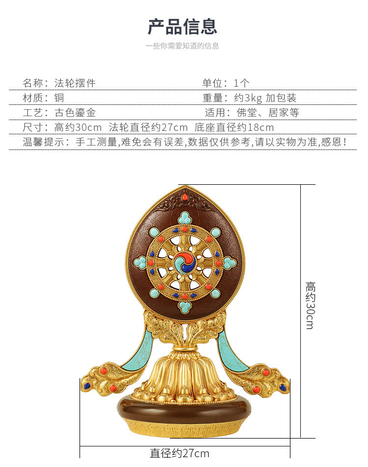 Бронзовые антикварные золотые украшения для подношений в зале Будды Xizang Huibao, удачный Фалун, крупный размер, духовная практика, тантрический инструмент
