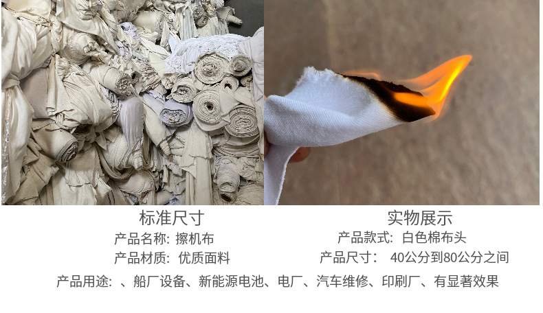 Чистые белые промышленные тряпки, отбеленные вторичные тряпки для уборки, впитывающие масло и воду, 100% хлопок, прямая продажа с завода