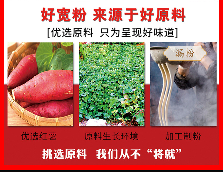 Сырьё и ингредиенты Cassava starch, corn starch, sweet potato starch, drinking water, edible salt, etc.