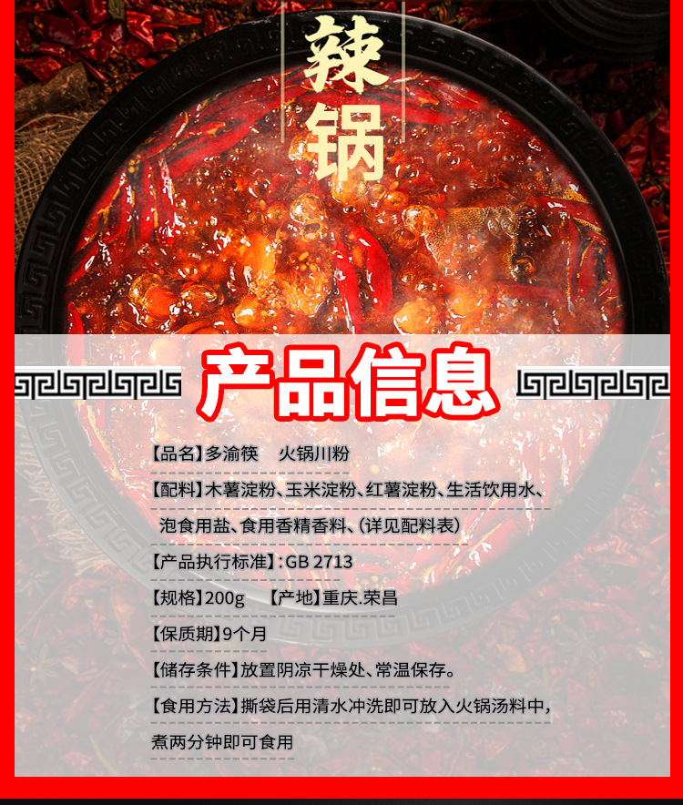 Номер товара Duoyu chopsticks 200g hot pot Sichuan powder