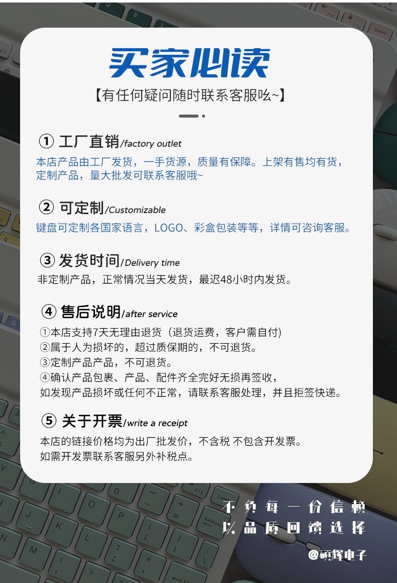 注:购买单键盘或者套装,20个以上,免费配键盘彩盒。有需要的联系客服备注。