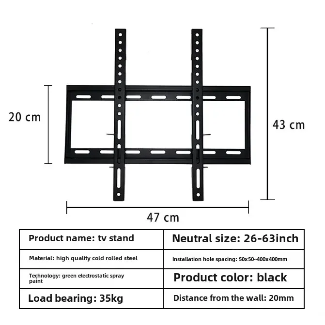 - Sturdy Construction : Constructed in China, this fixed wall bracket ensures durability and stability, providing a secure hold for your television.