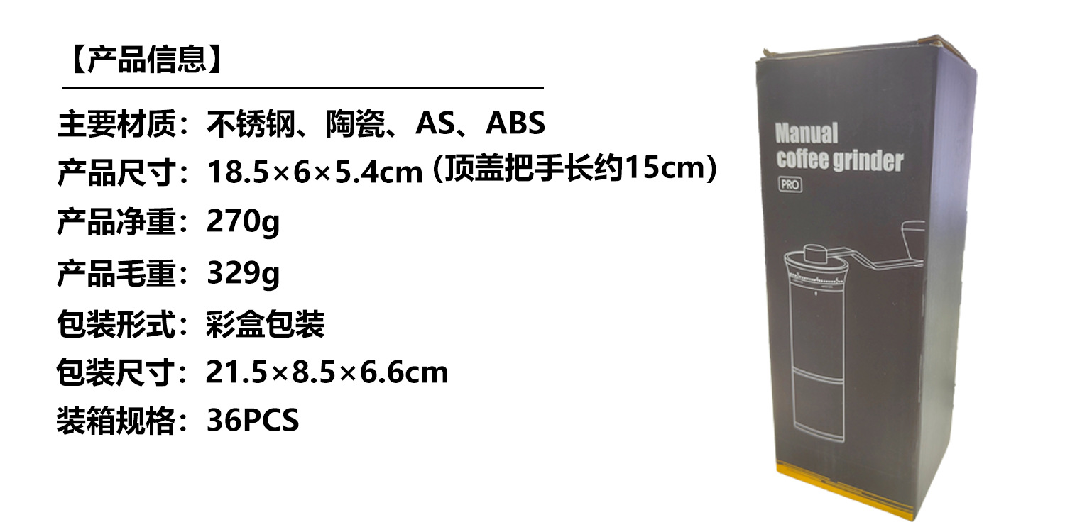 ![]() | Stainless steel manual bean grinder | ¥27.0 / ≈ 326 ₽ | 8780 | 5899783079727 | |