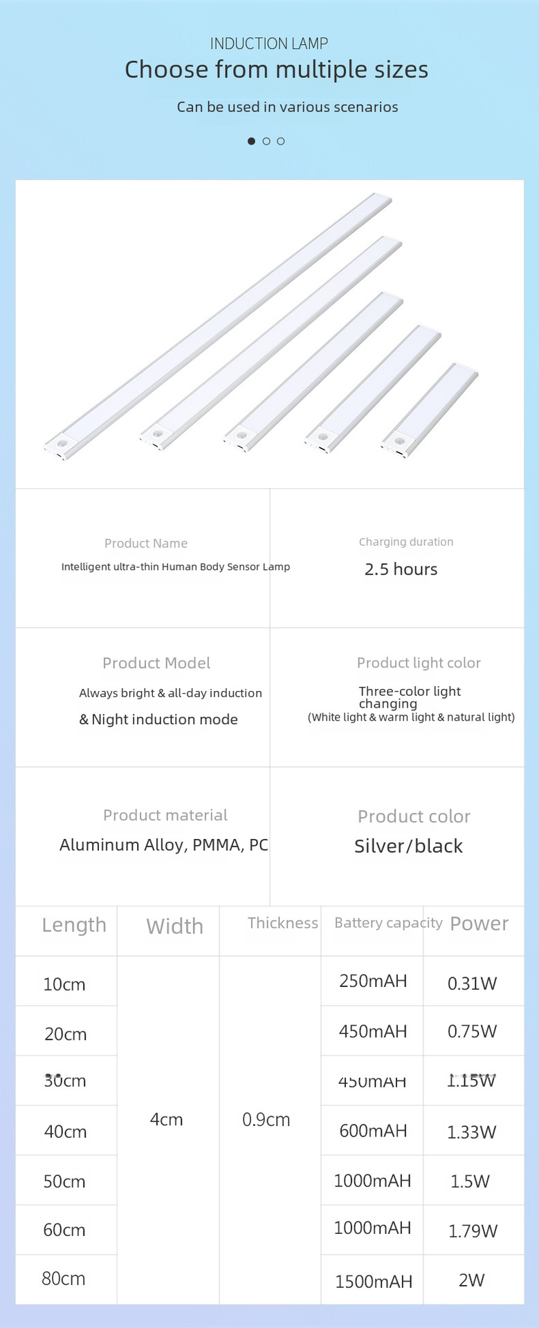- Smart Sensor Lighting:This ultra-thin smart charging lamp features a human sensor design, ensuring optimal lighting based on your movement. It's perfect for kitchens, bedrooms, and more.