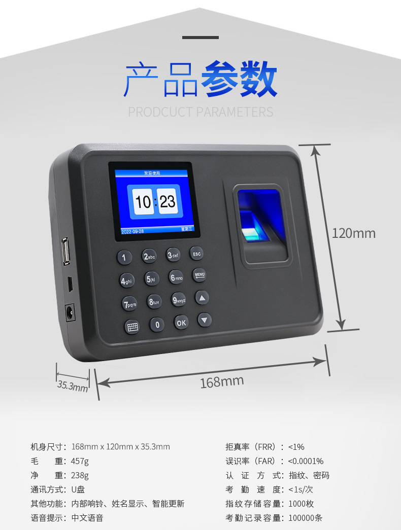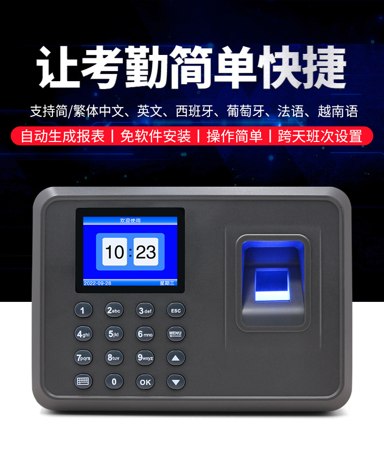 Эффективная машина для учета рабочего времени East F05 с многоязычным дисплеем на 25 языках, для сотрудников с отпечатками пальцев и картами