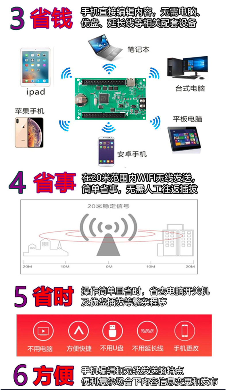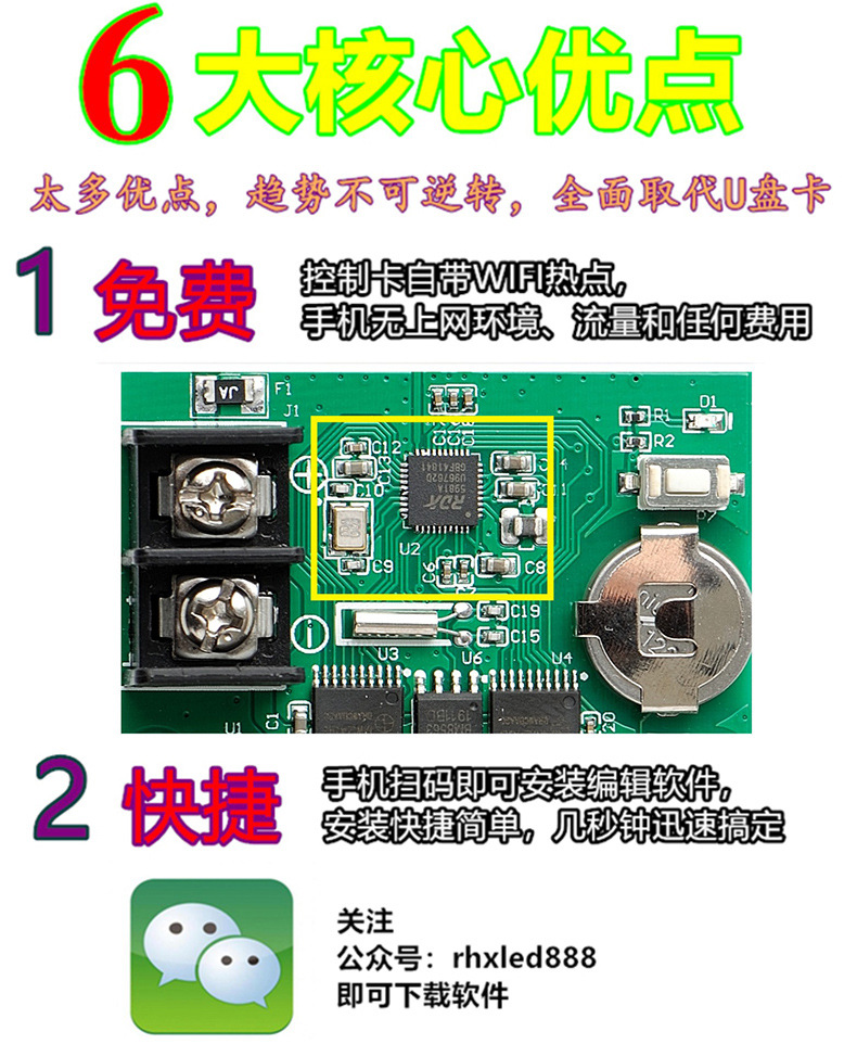 Wuzhou Optoelectronics Ruihexin беспроводной WiFi дверной головной полноцветный LED рекламный дисплей, управление изменением слов с помощью мобильного телефона