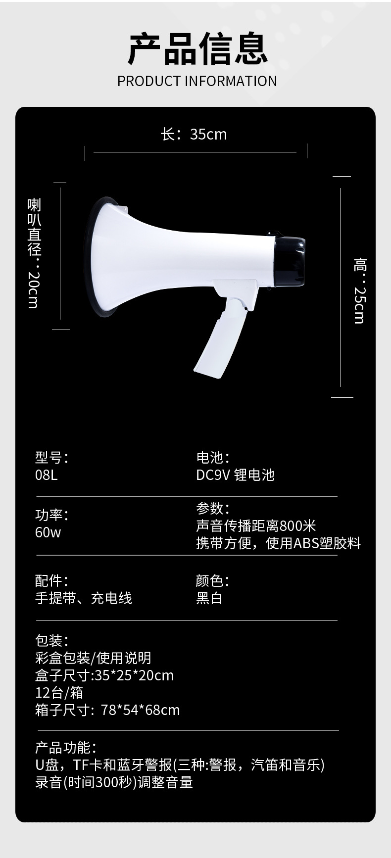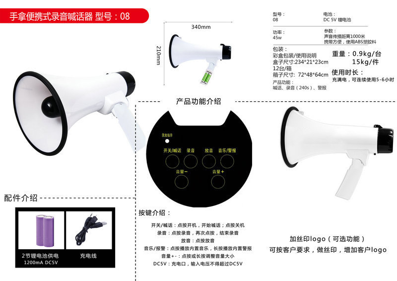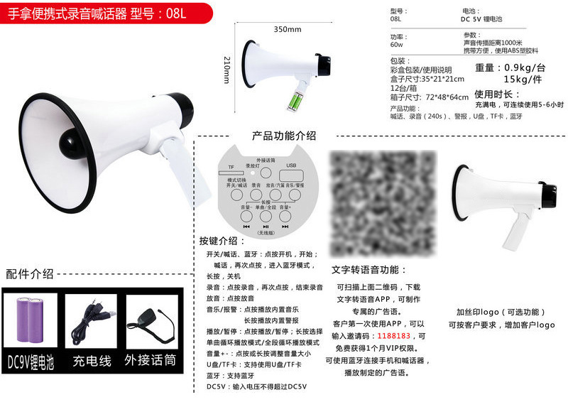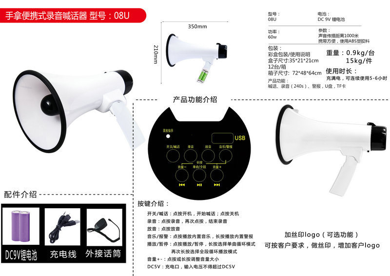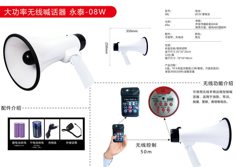 Мощный складной громкоговоритель для уличных торговцев, многофункциональный мегафон для улицы, портативный рекламный и продажный громкоговоритель