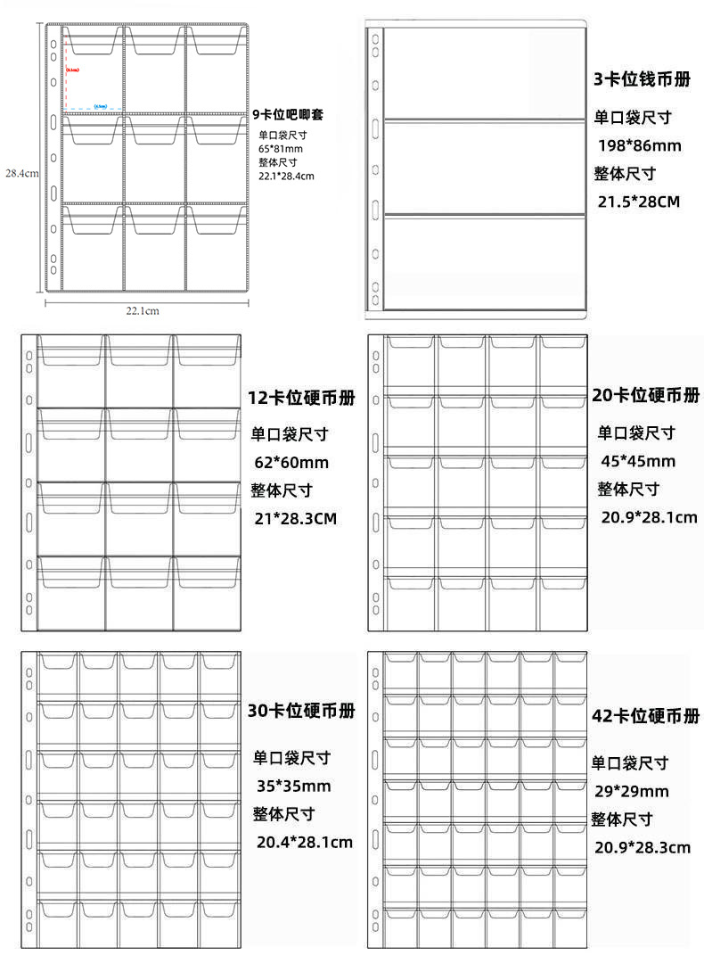 活页20/30/42口袋活页夹硬币套