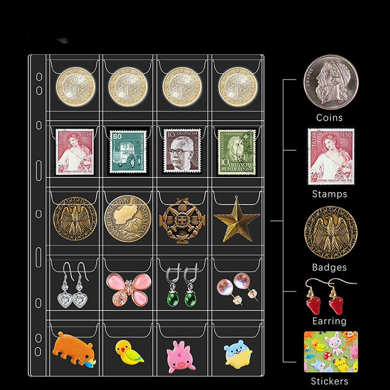 Лист для коллекции памятных монет из ЭВА, 20/30/42 кармана, прозрачный внутренний лист из ПВХ