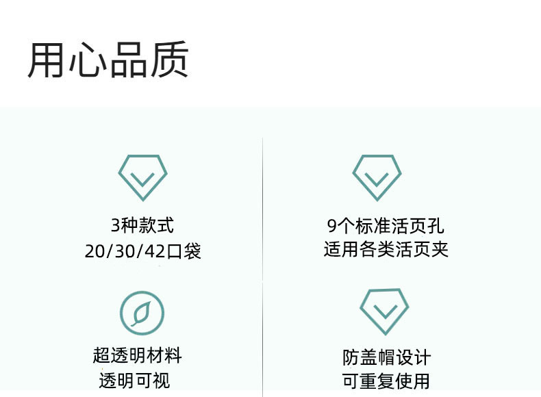【 款 式 】 带9个标准活页孔 单面20/30/42口袋