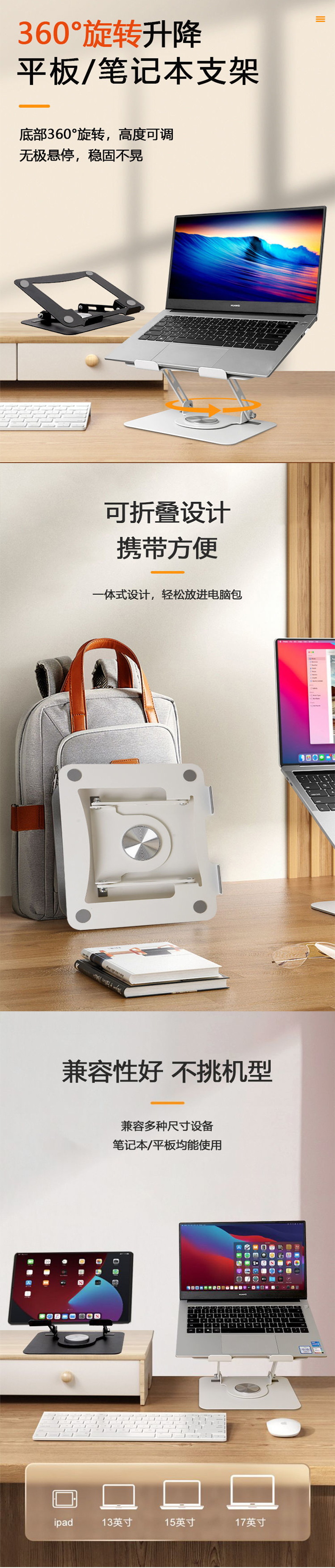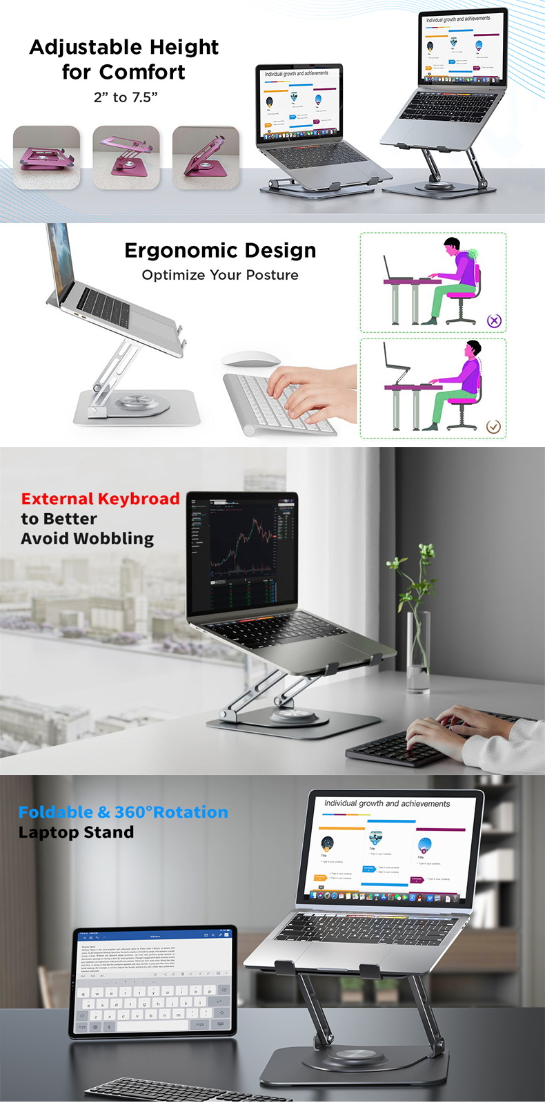 Складная подставка для ноутбука и планшета настольная с регулировкой высоты охлаждения 360 градусов поворотный металлический кронштейн