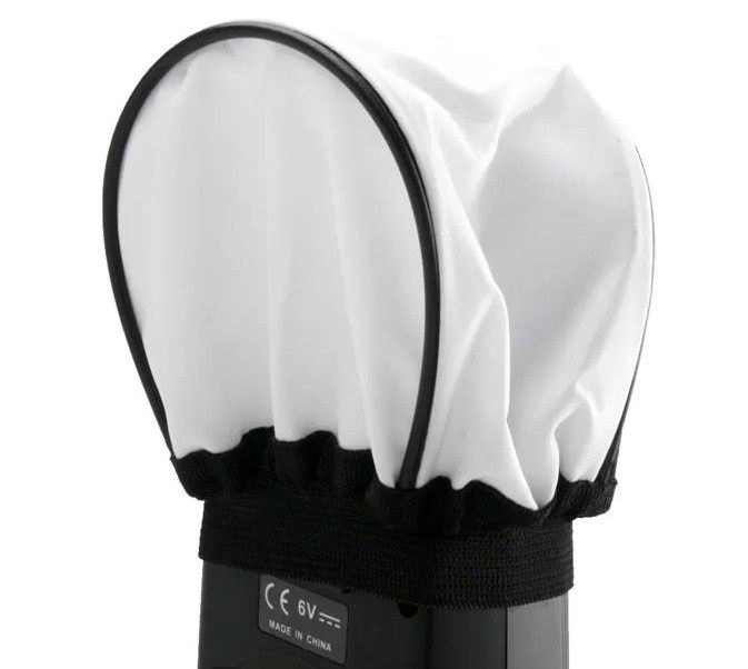 使用后,暴光需要适当增加1-2档白布柔光罩,收口为松紧,能有效遮住闪光灯,用于室内拍摄人像和室外补光,布罩可以将闪光灯照出来的光线变得柔和,使照片看起来更加自然。通过布罩可以把闪光灯的直射光变为柔和的漫射光,消去人物或物品的光斑。