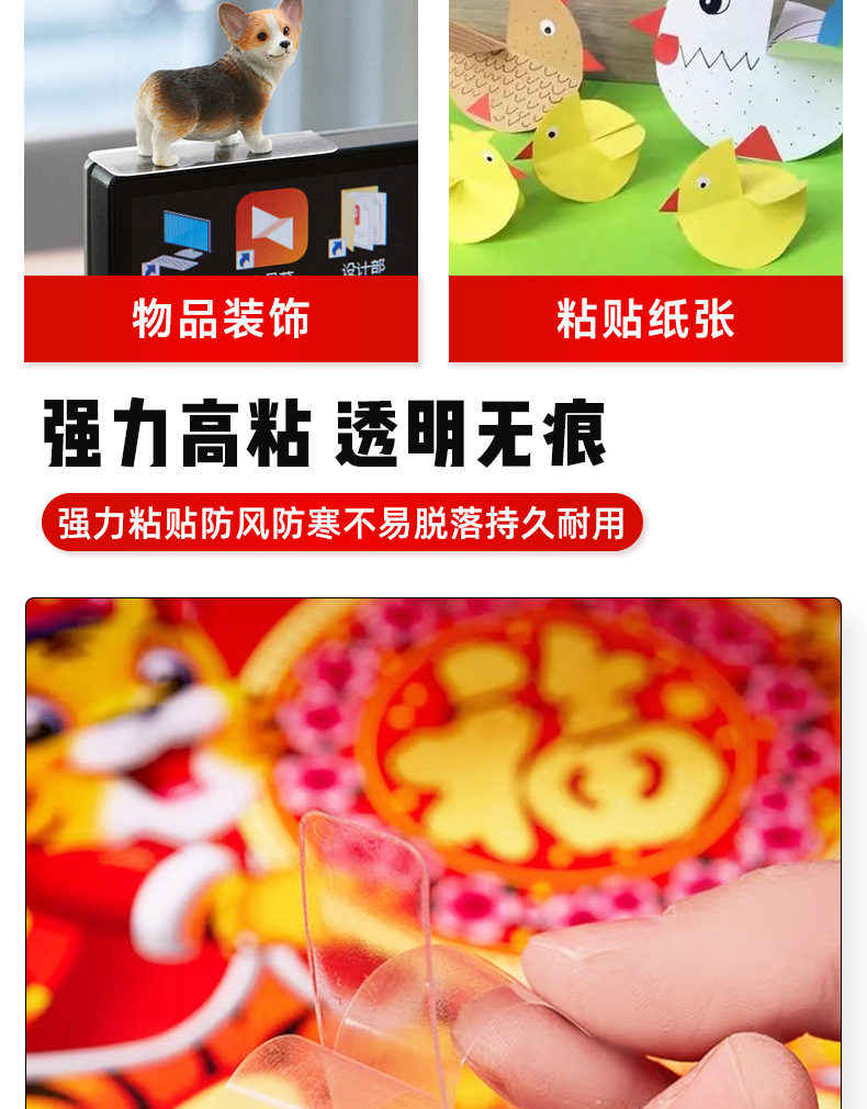 Двойные клейкие наклейки для домашних нужд на праздник весны, бесследные наклейки с иероглифом "Фу", прозрачные двусторонние наклейки оптом, двусторонние клейкие наклейки без сверления