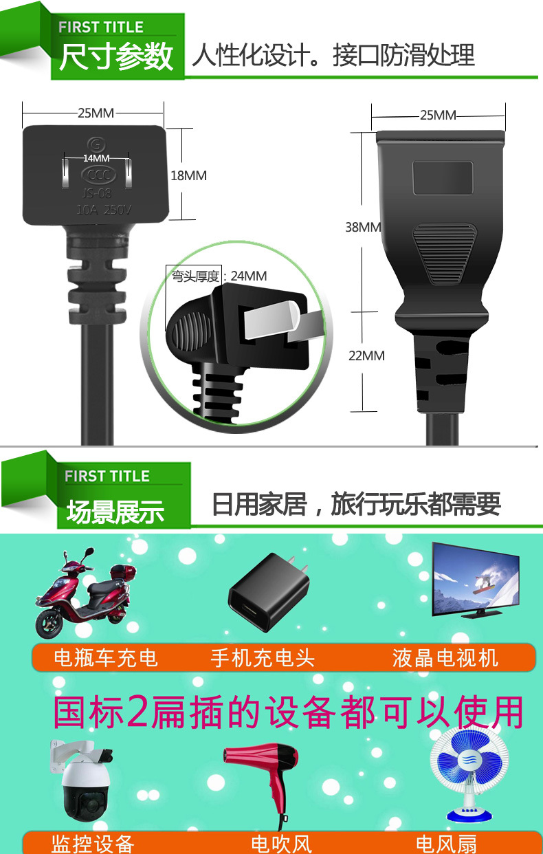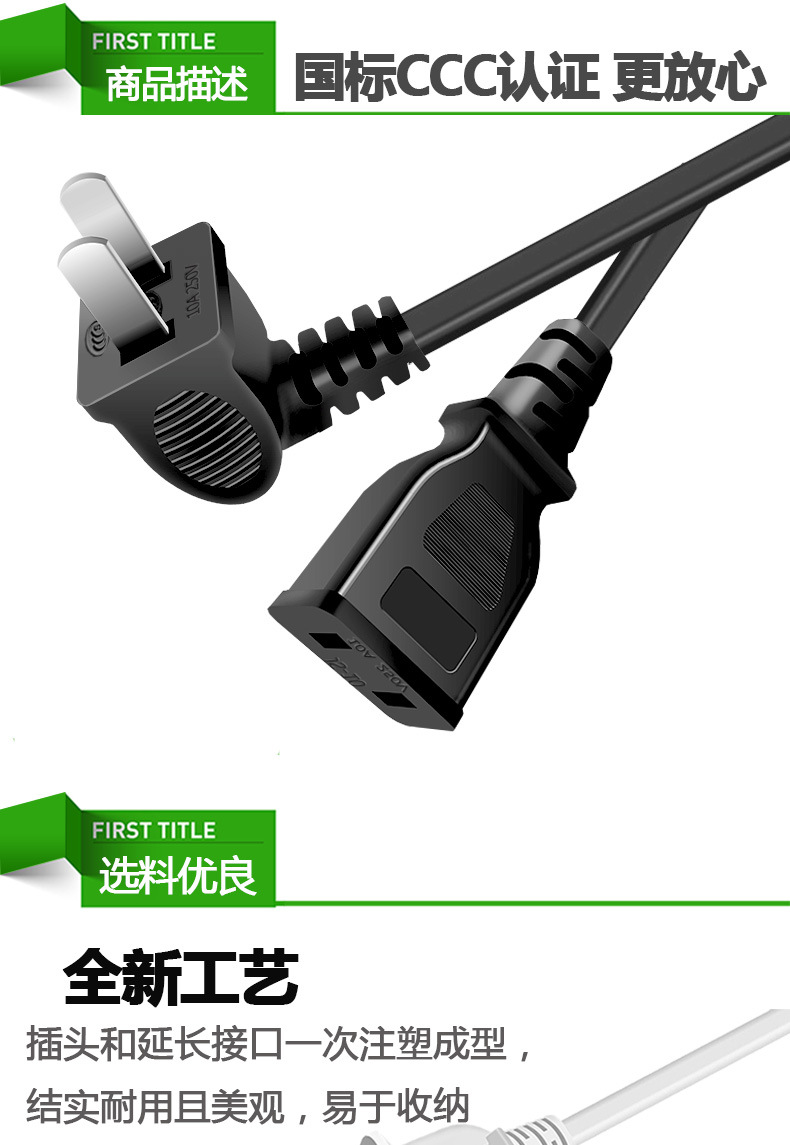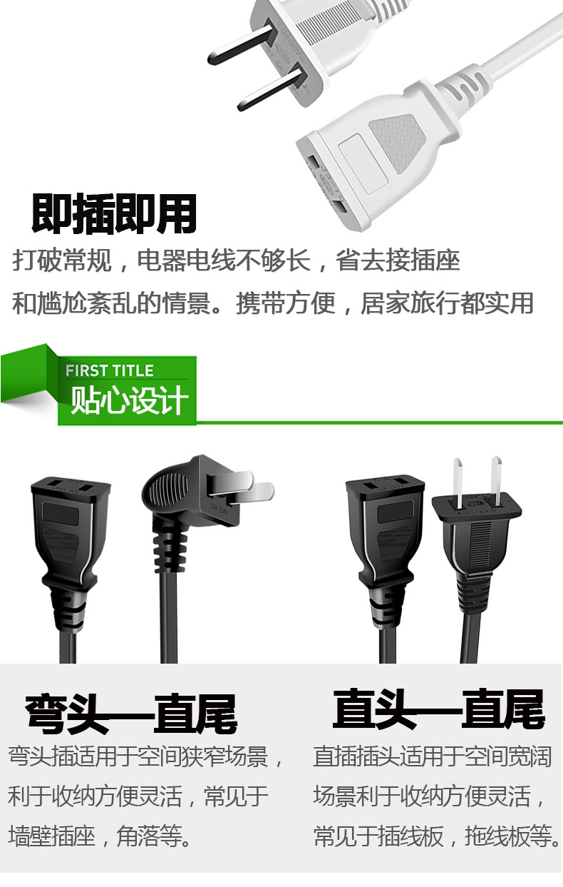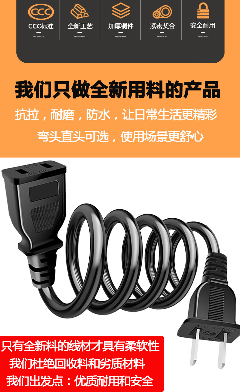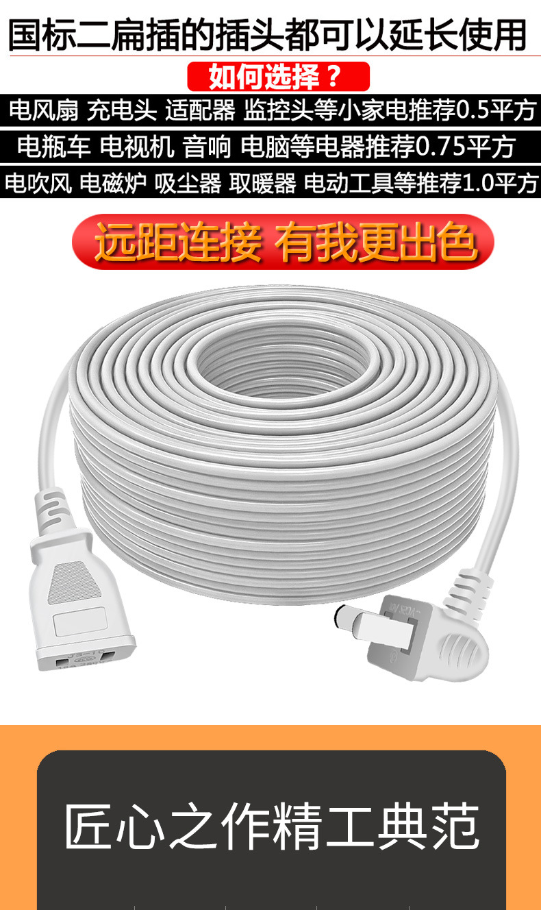 Удлинитель с двумя жилами, двухконтактный, для телевизора, вентилятора, электрического автомобиля