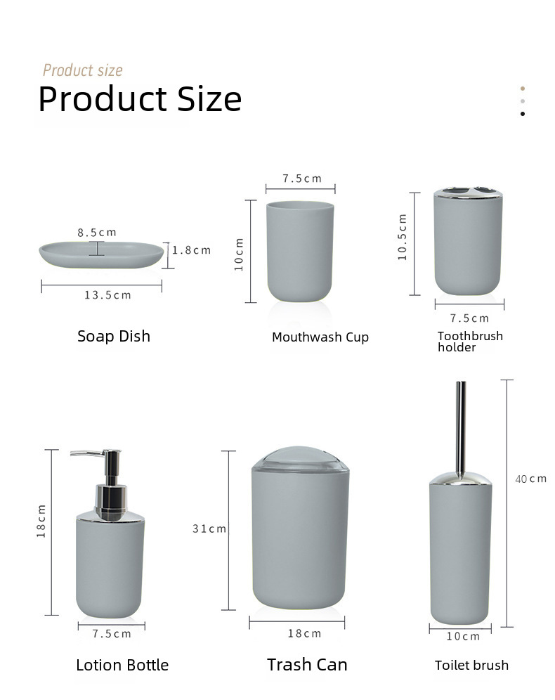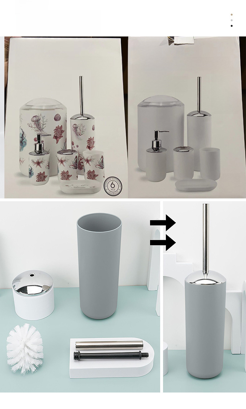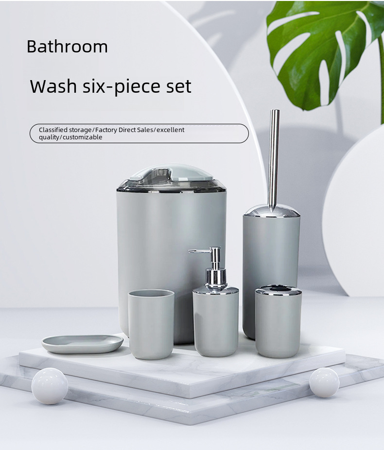 Шестикомплектный набор для ванной, набор для мытья и хранения, мусорное ведро, подставка для мыла, держатель для зубных щеток, туалетный ёршик, популярная модель