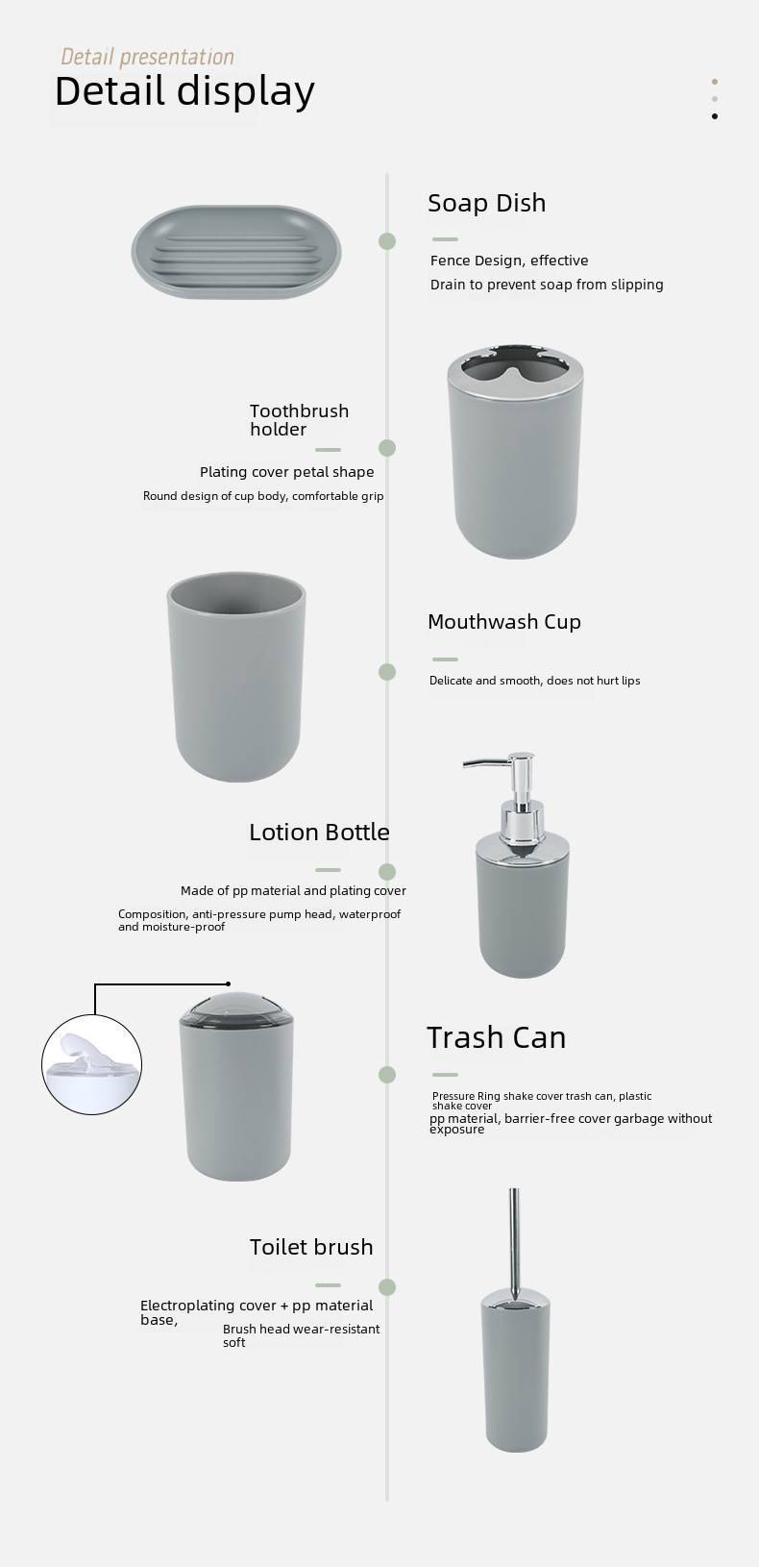 - Bathroom Set:This comprehensive bathroom set includes everything you need for a seamless bathroom experience, from a toothbrush holder to a soap dish and waste bin.