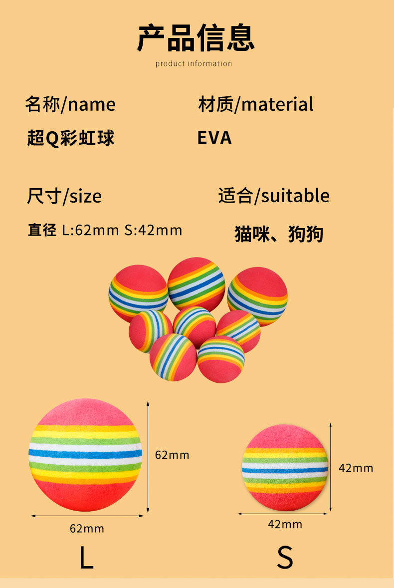 Игрушка для животных Eva Радужный мяч для кошек и собак Маленький смешной мяч Цветной мяч