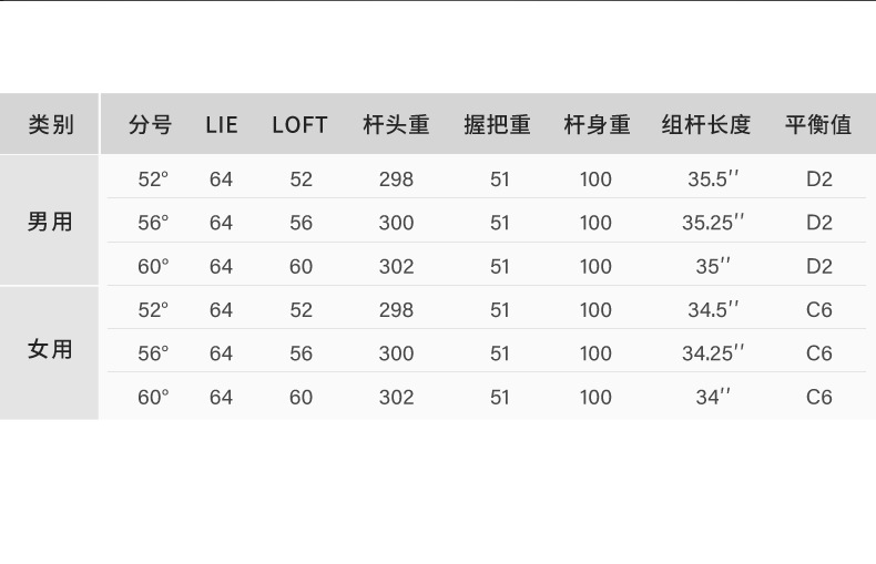 | 球杆角度 | 52°/56°/60° | 材质 | 不锈钢 | |