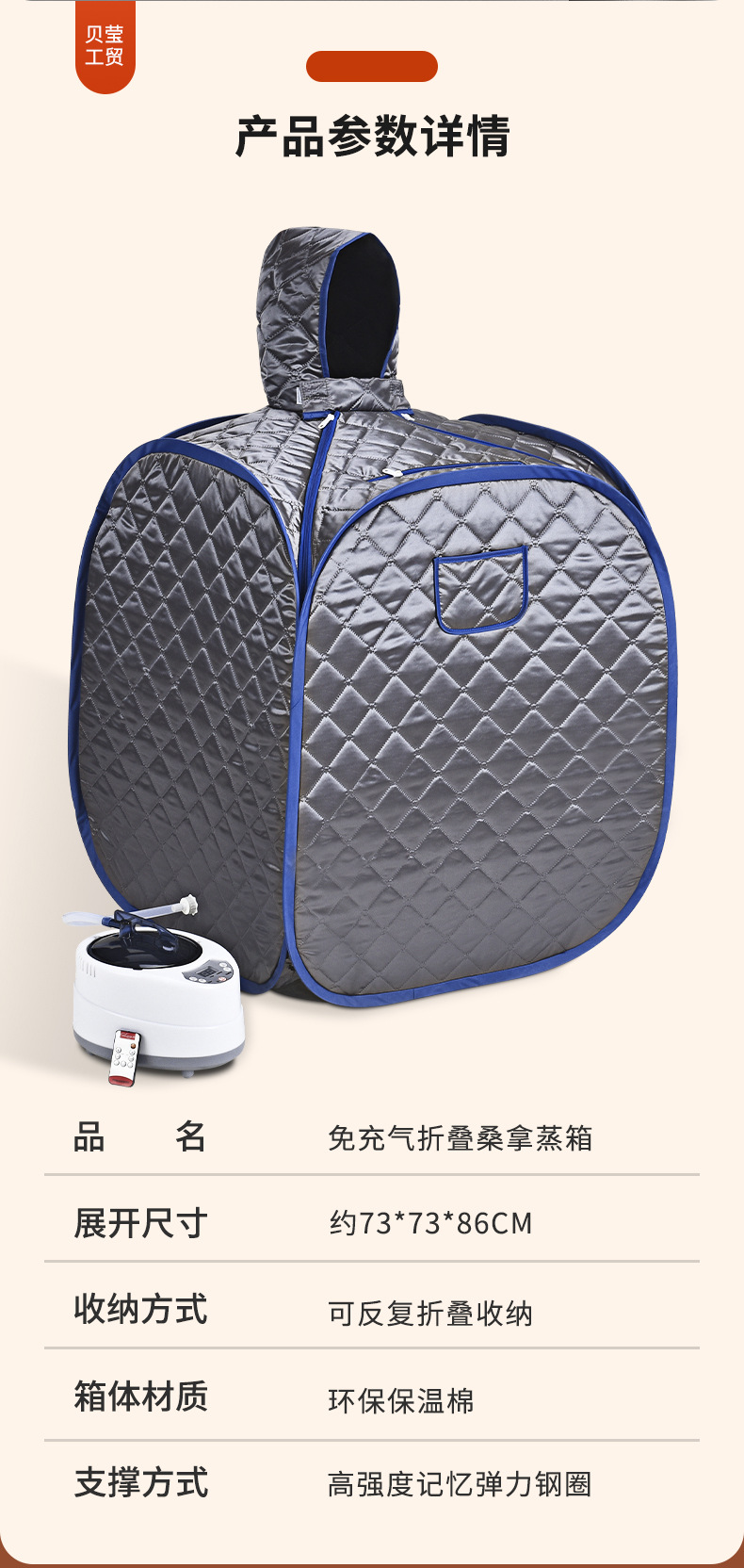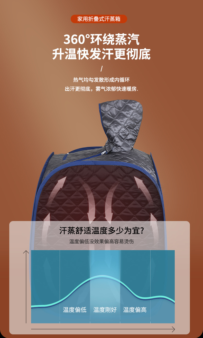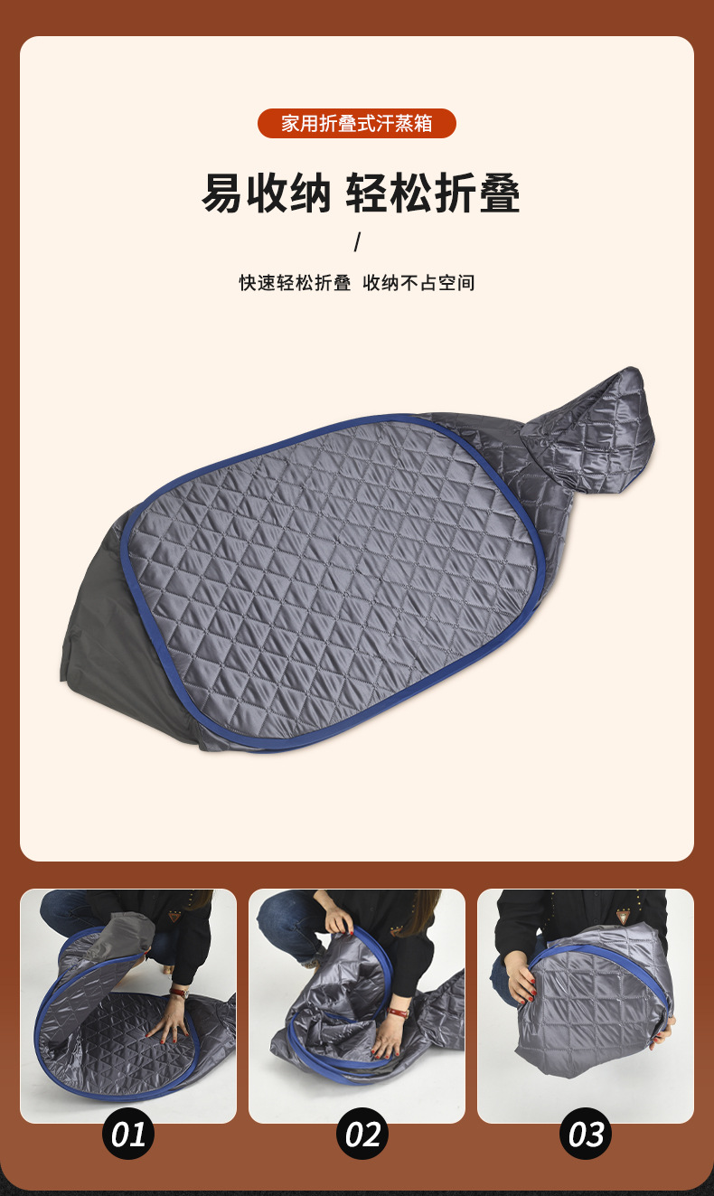 家用蒸汽桑拿浴箱四边折叠套装,便携折叠、免充气快速安装。